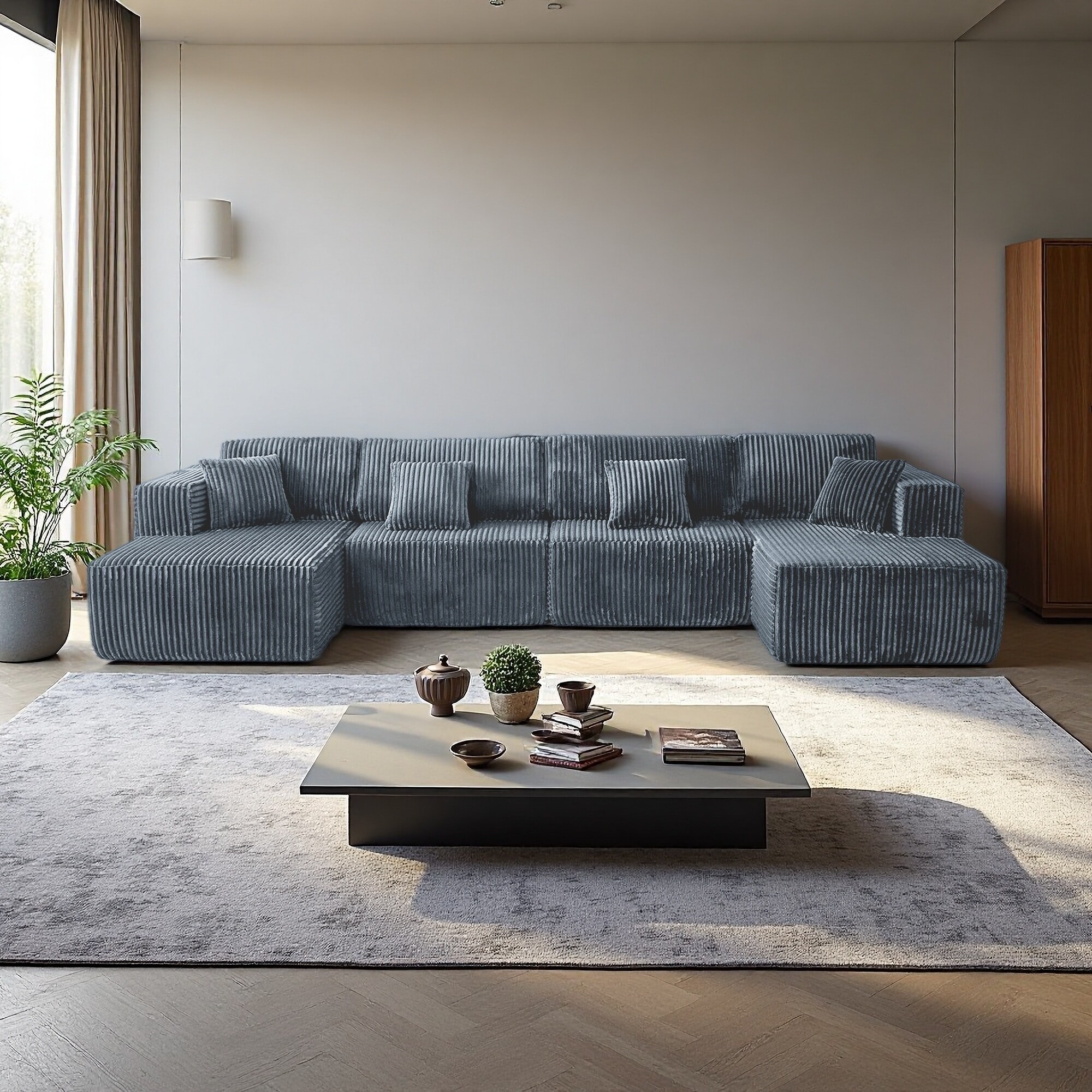 Comfortable Deep Seat Reversible Modular 6 Seater Sectional Super Soft Sofa U Shaped Sectional Couch