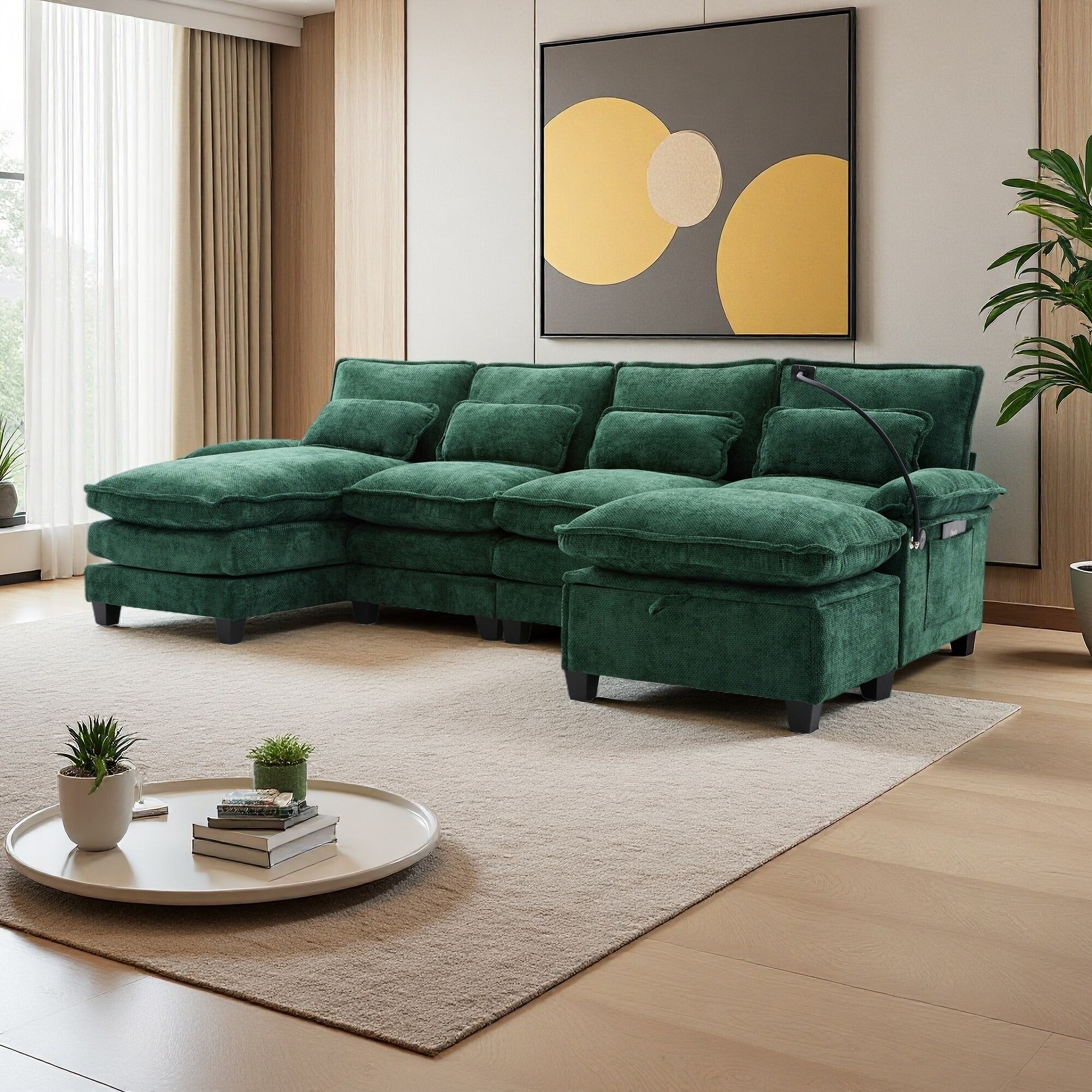 106.69" Chenille U-Shaped Sectional Sofa with Chaise & USB