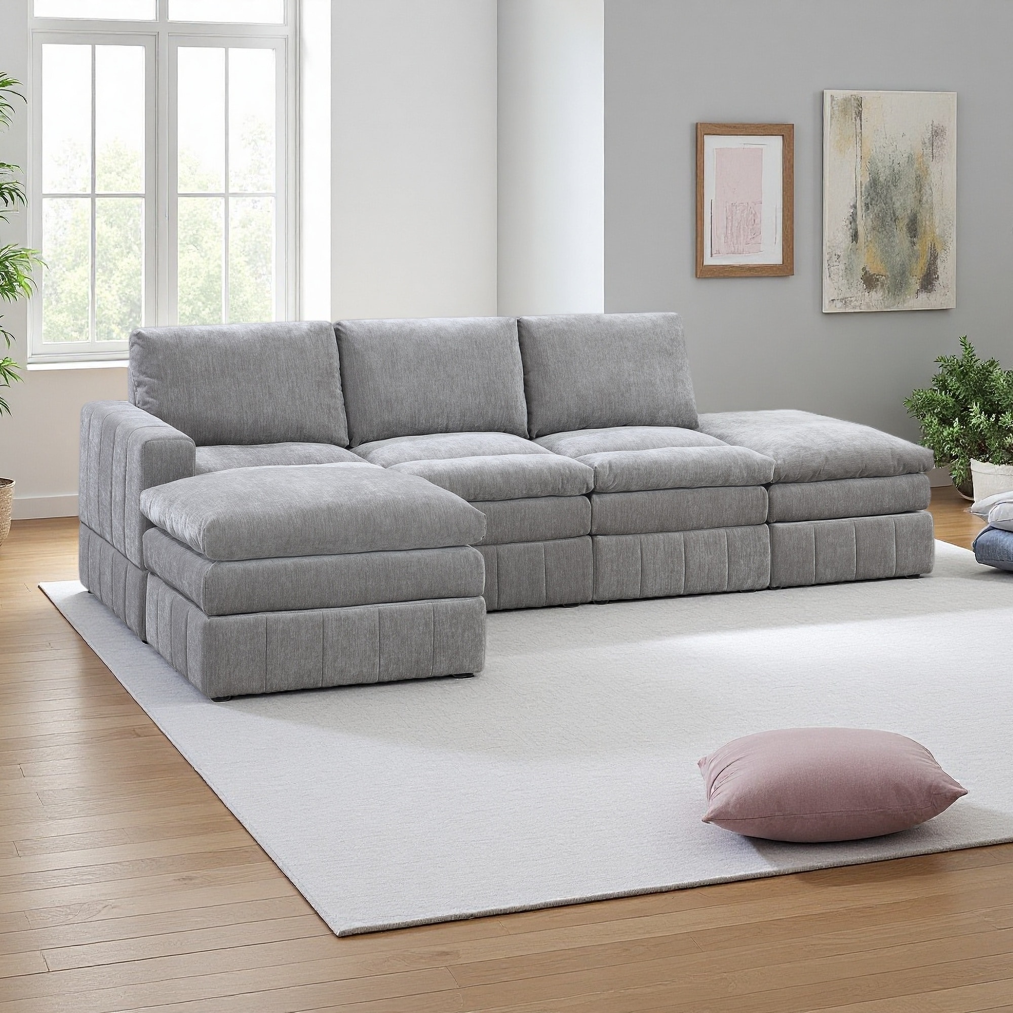 102" Chenille L-Shaped 3-Seat Sectional Sofa with Movable Ottoman & Cloud Cushions