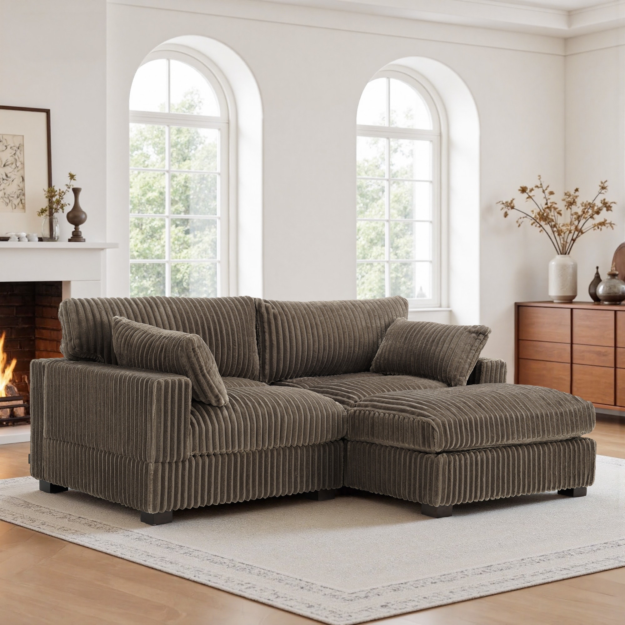 Modular Sectional Sofa with Pillows, Corduroy Upholstered 3-Seater Sofa, All-Compressed Foam Sofa for Living Room, Apartment