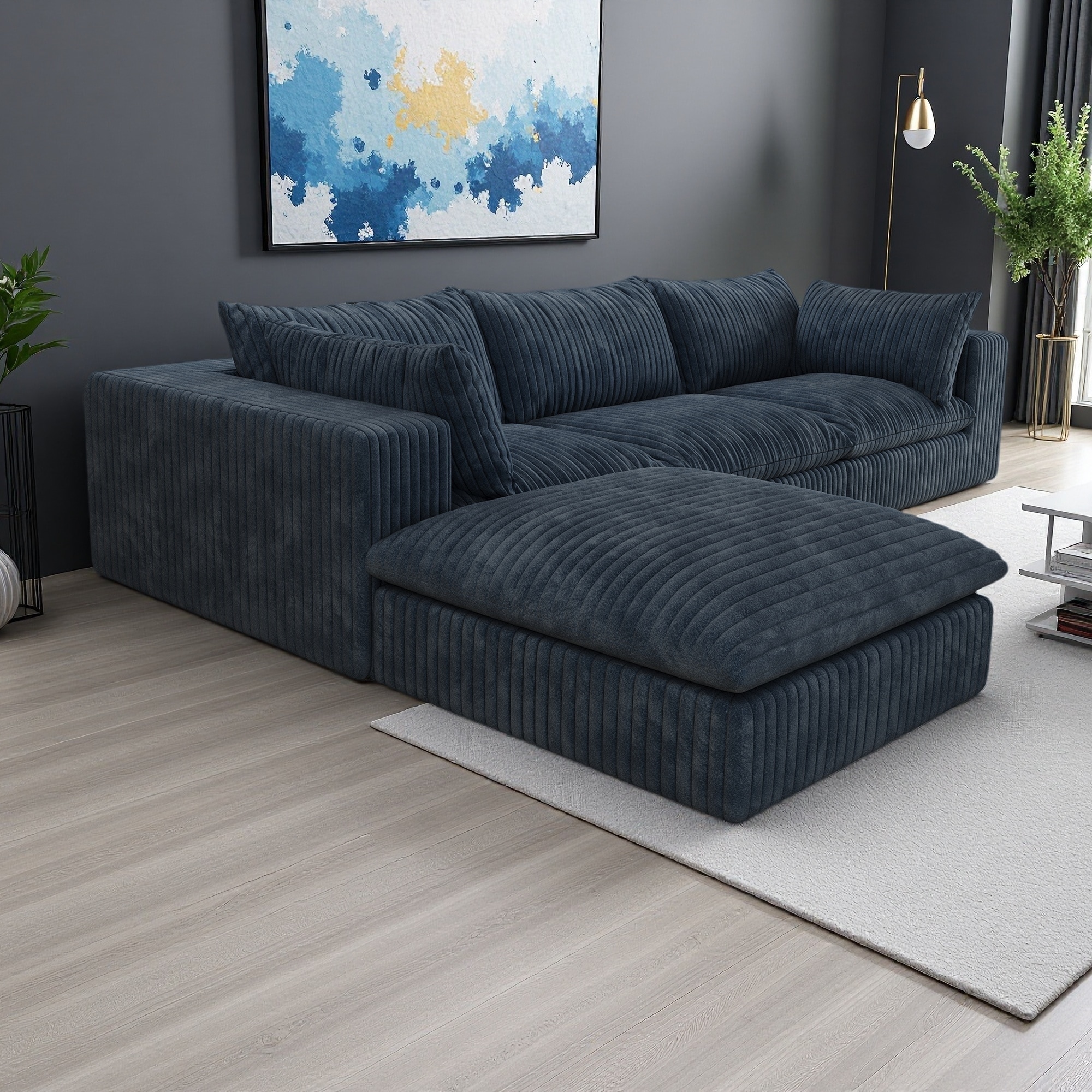 Modular Sectional Sofa with Ottomans, Oversized Corduroy Upholstered Cloud Sofa, Convertible Boneless Deep Seat Couch