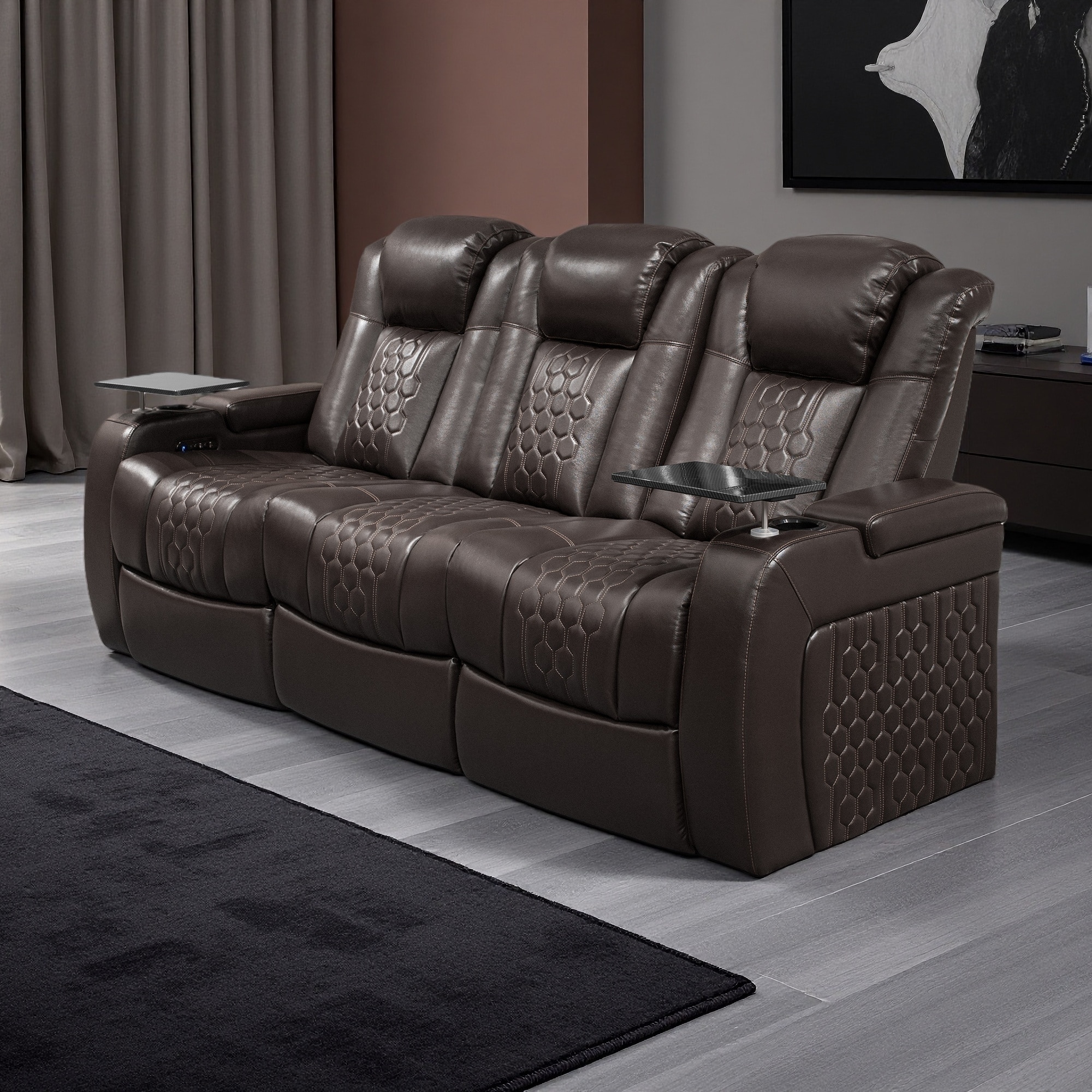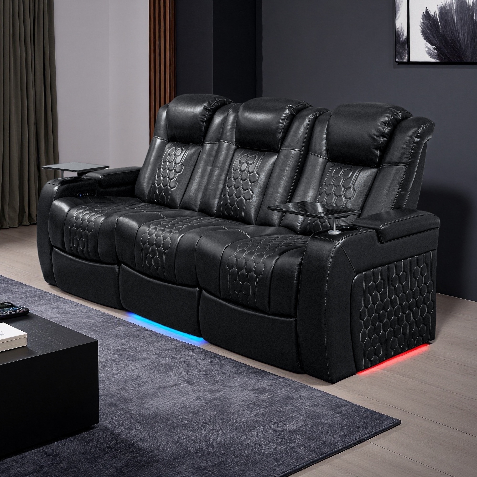 86.6" Top-Grain Nappa Leather Power Recliner Sectional Sofa with Smart Charging and RGB LED Lighting (3-Piece)