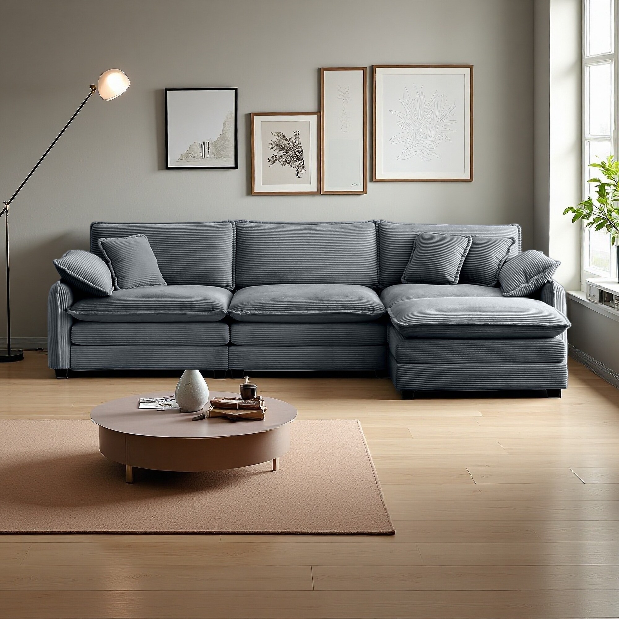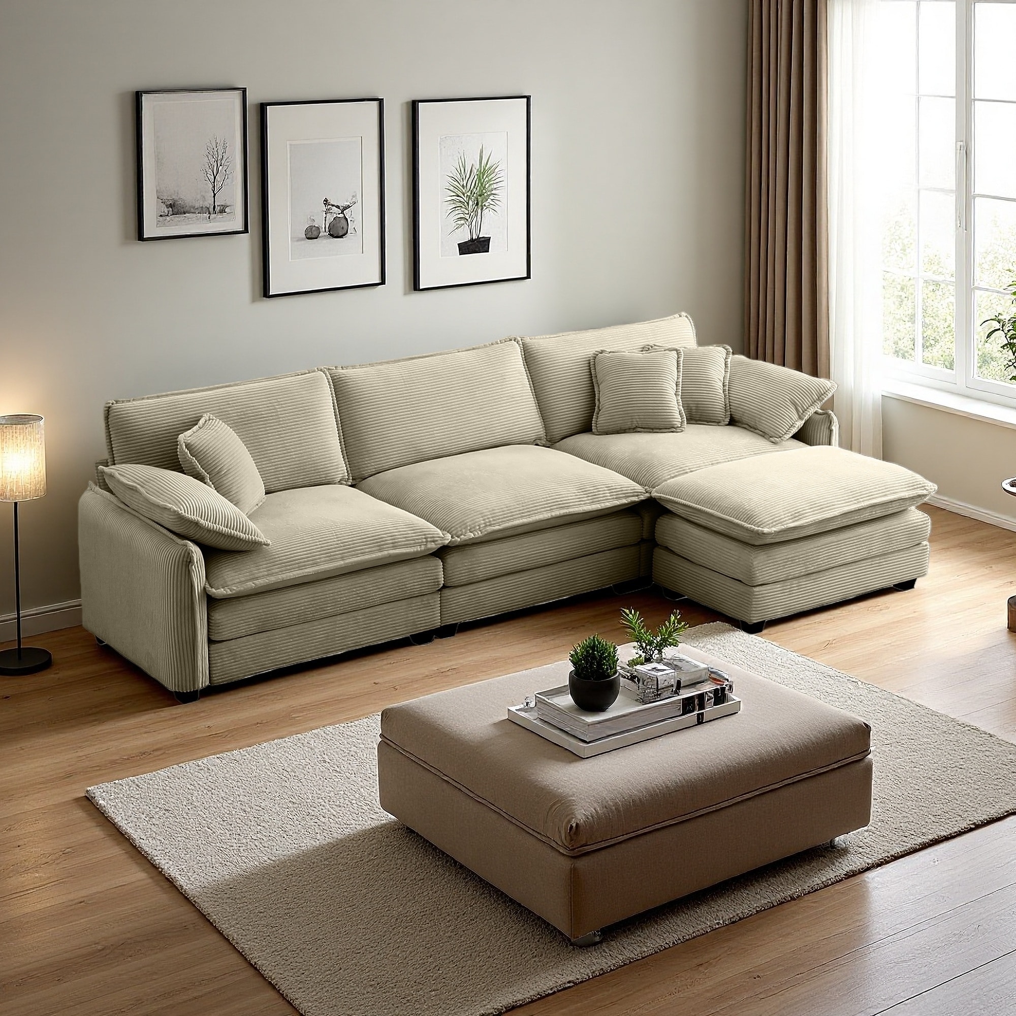 115.34" Corduroy Oversize L-Shaped Modular Sectional Sofa with 1 Ottoman (3-Seater)