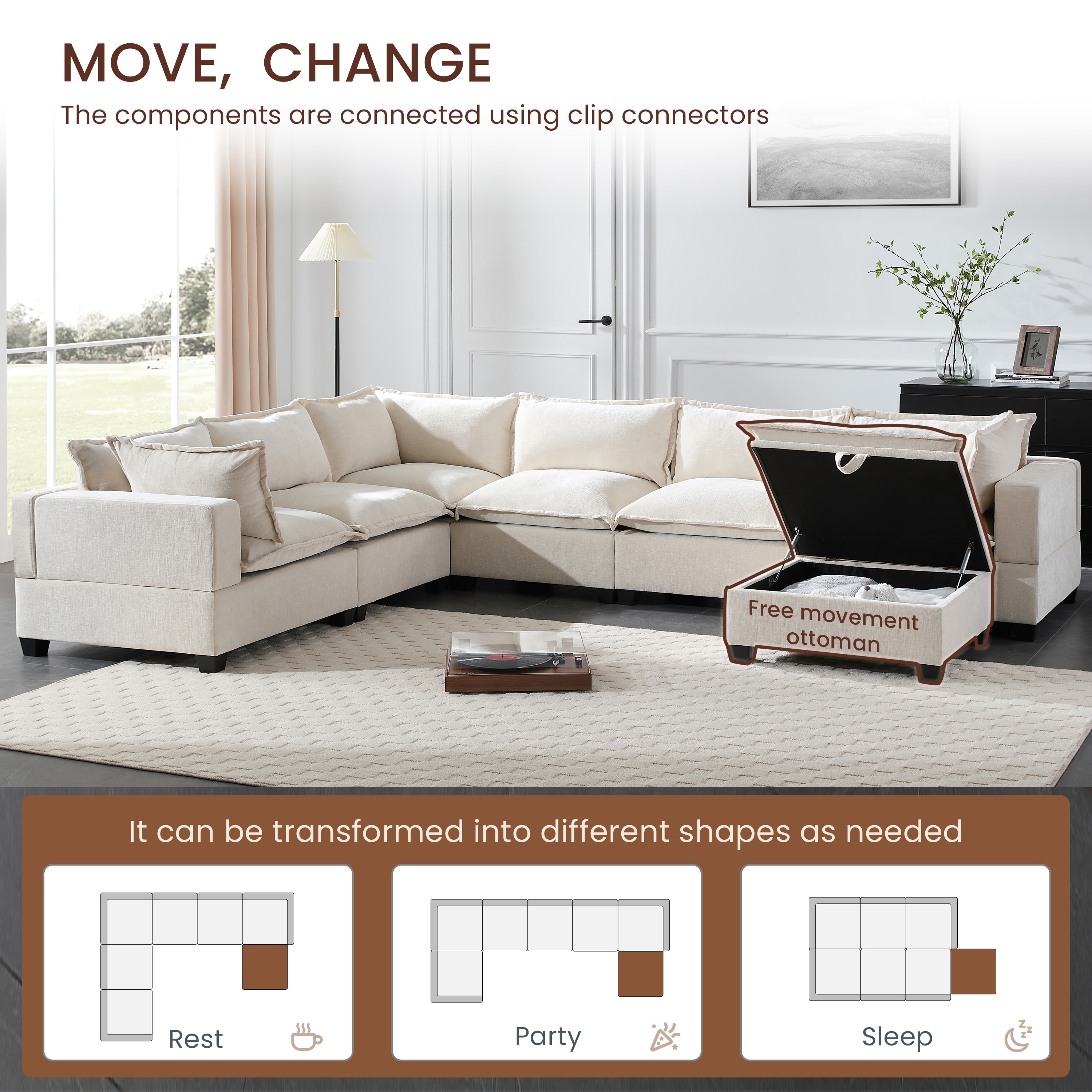 Modern U-Shaped Modular Couch Set with Storage Ottoman, Chenille 7-Seat Sectional Sofa Sleeper Bed Comfy Wide Seat Couches