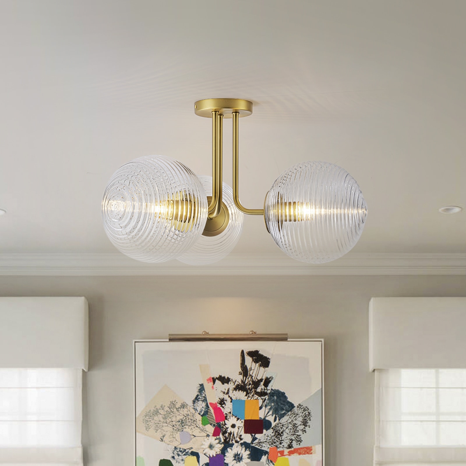 3 - Light 22'' Modern Sputnik Globe Glass Semi Flush Mount Light