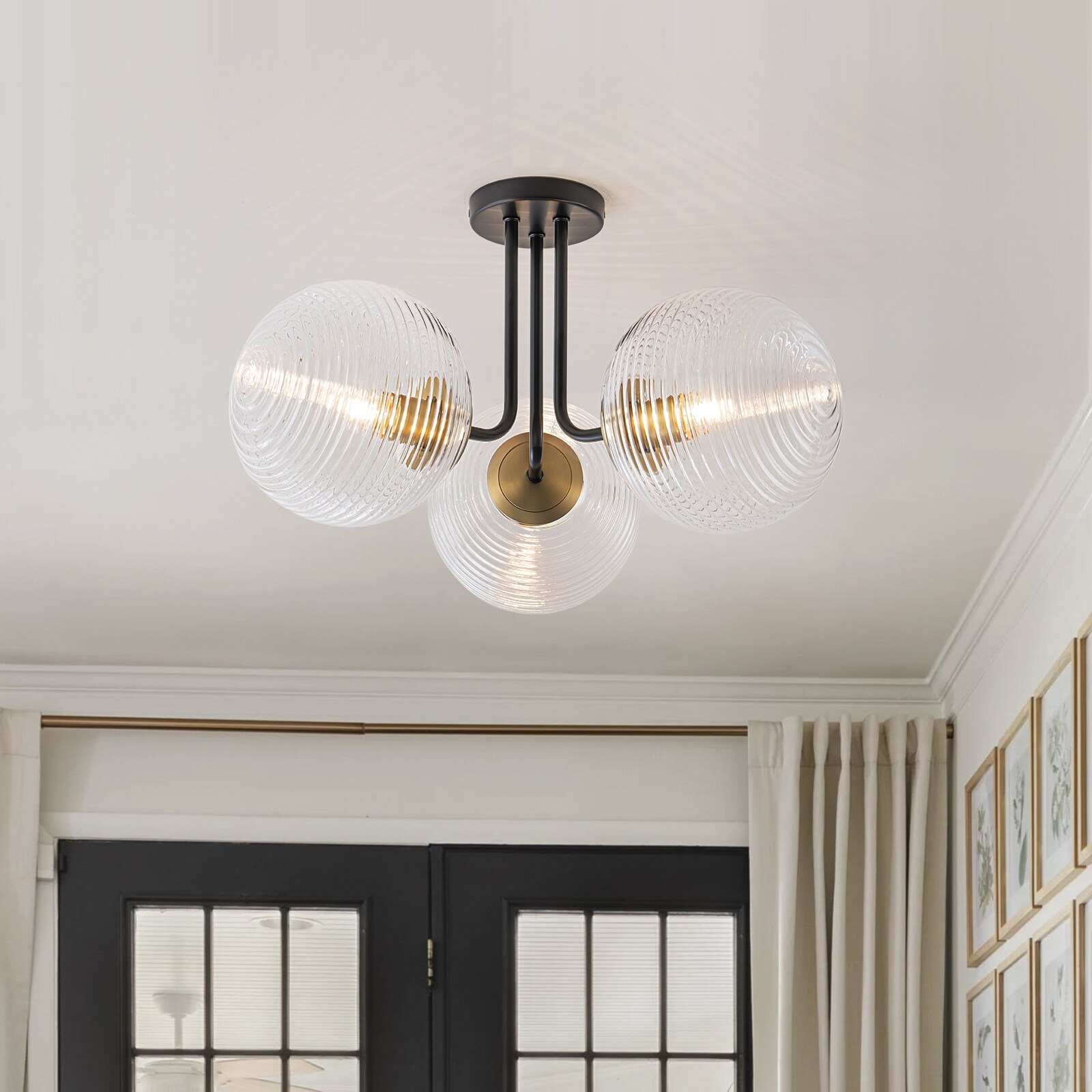 Amado 3 Light Semi Flush Mount - Matte Black Finish - Clear Glass