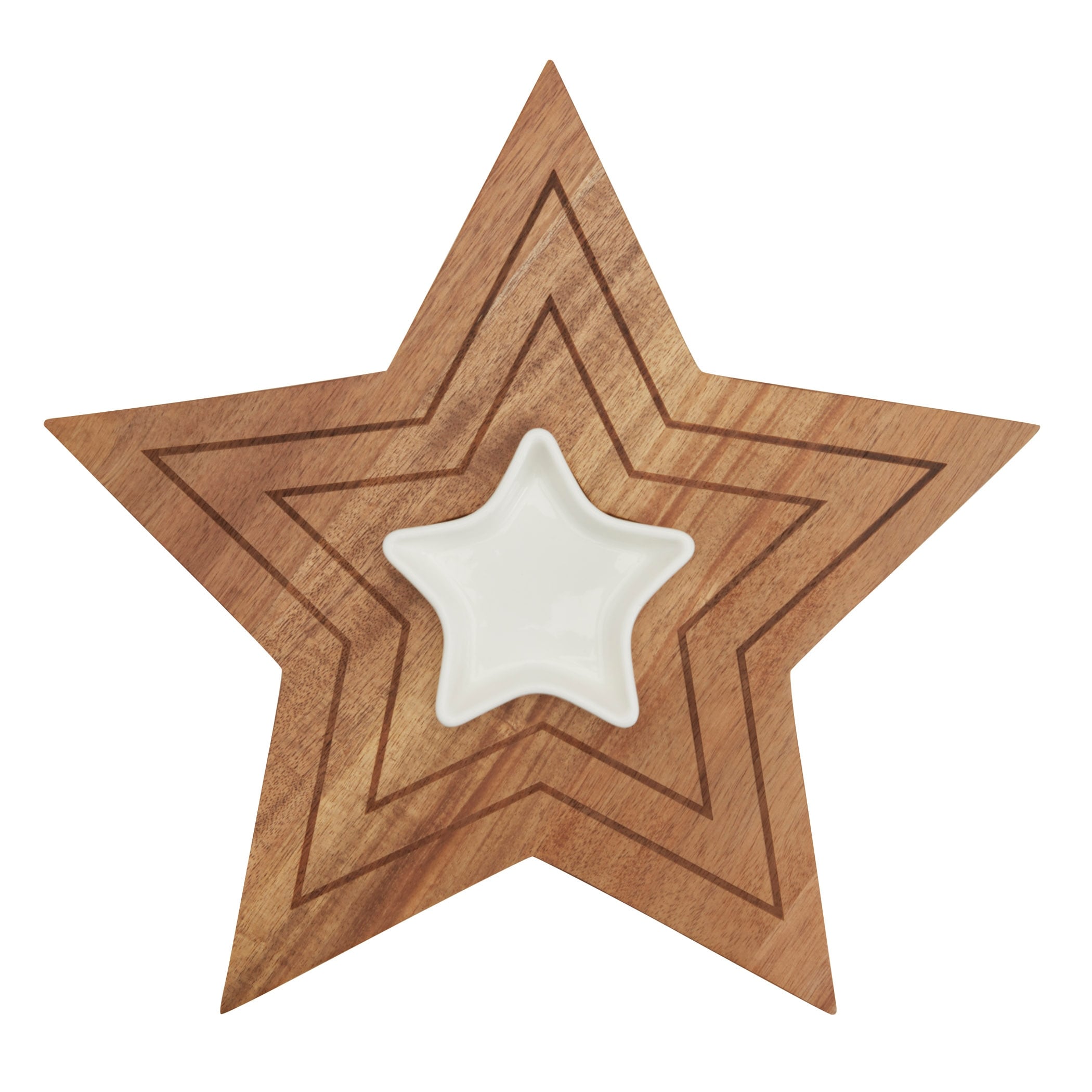 Tabletops Gallery Set of 2 Star Acacia Serving Board with Ceramic Bowl