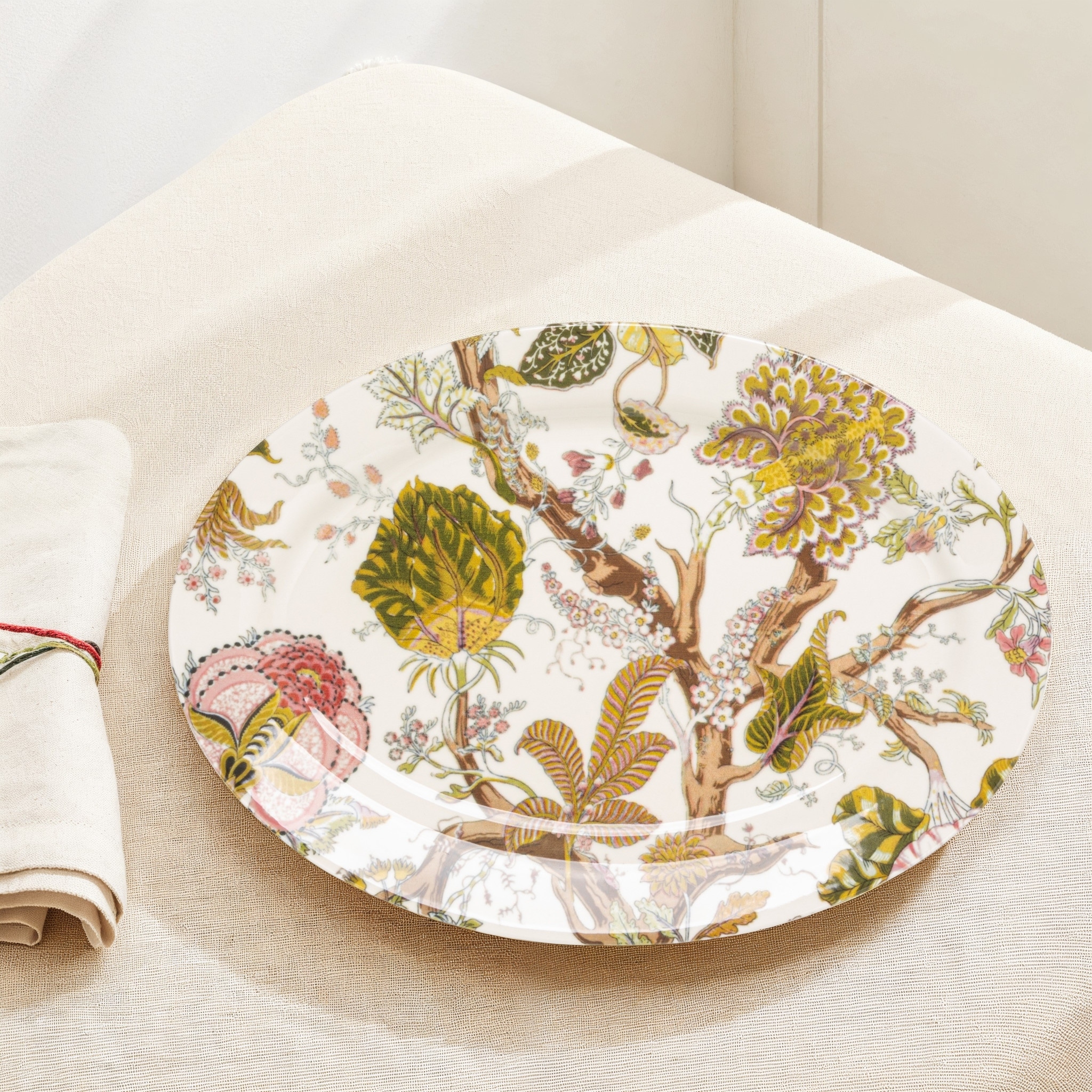 Printed Stoneware Platter with Botanicals - 13.75"L x 9.75"W x 1.13"H