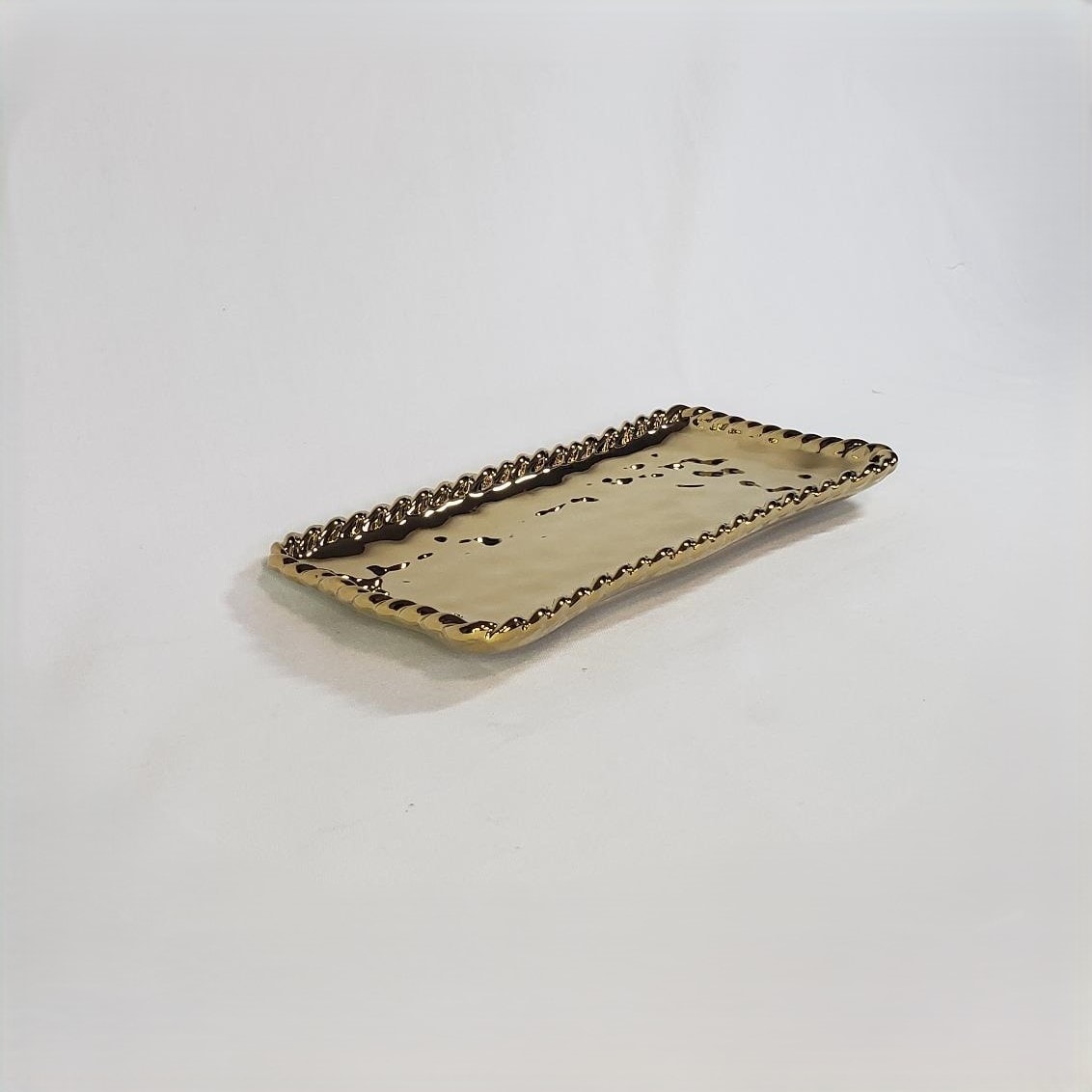 Gold Ceramic plate with Rope Accent Rim 10.25"