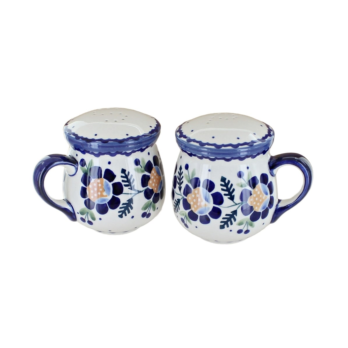 Blue Rose Polish Pottery S138 Manufaktura Salt & Pepper Shakers with Handles