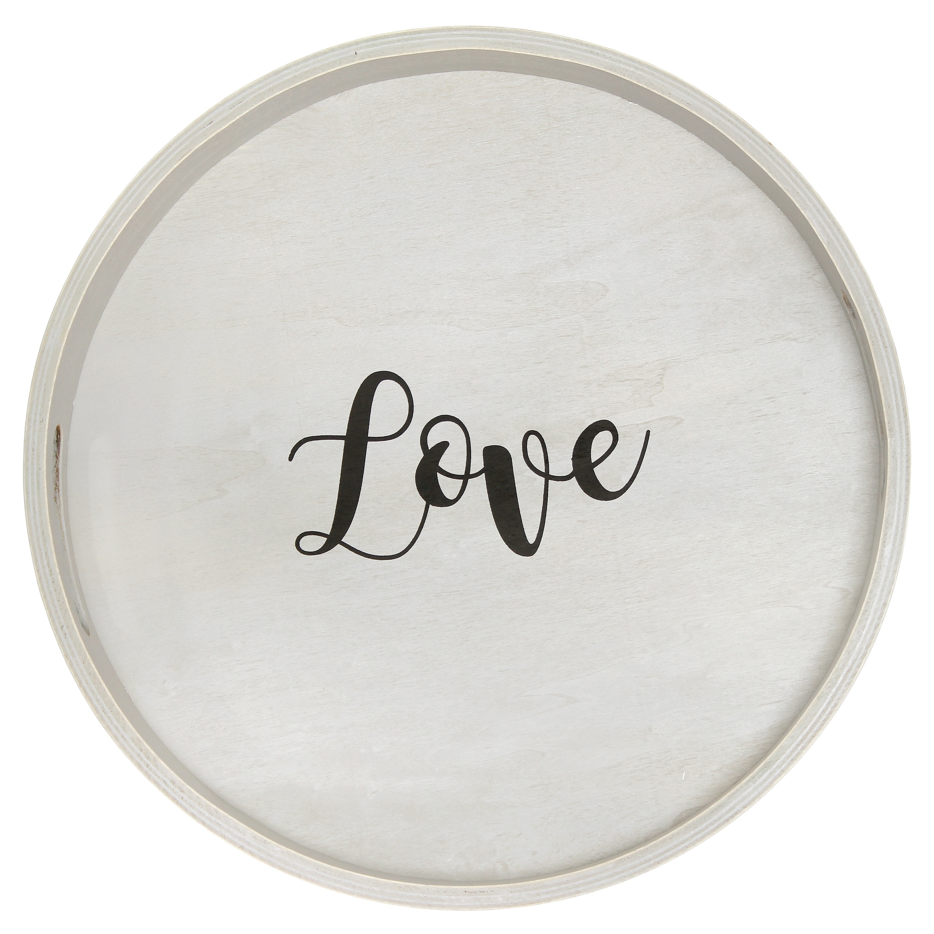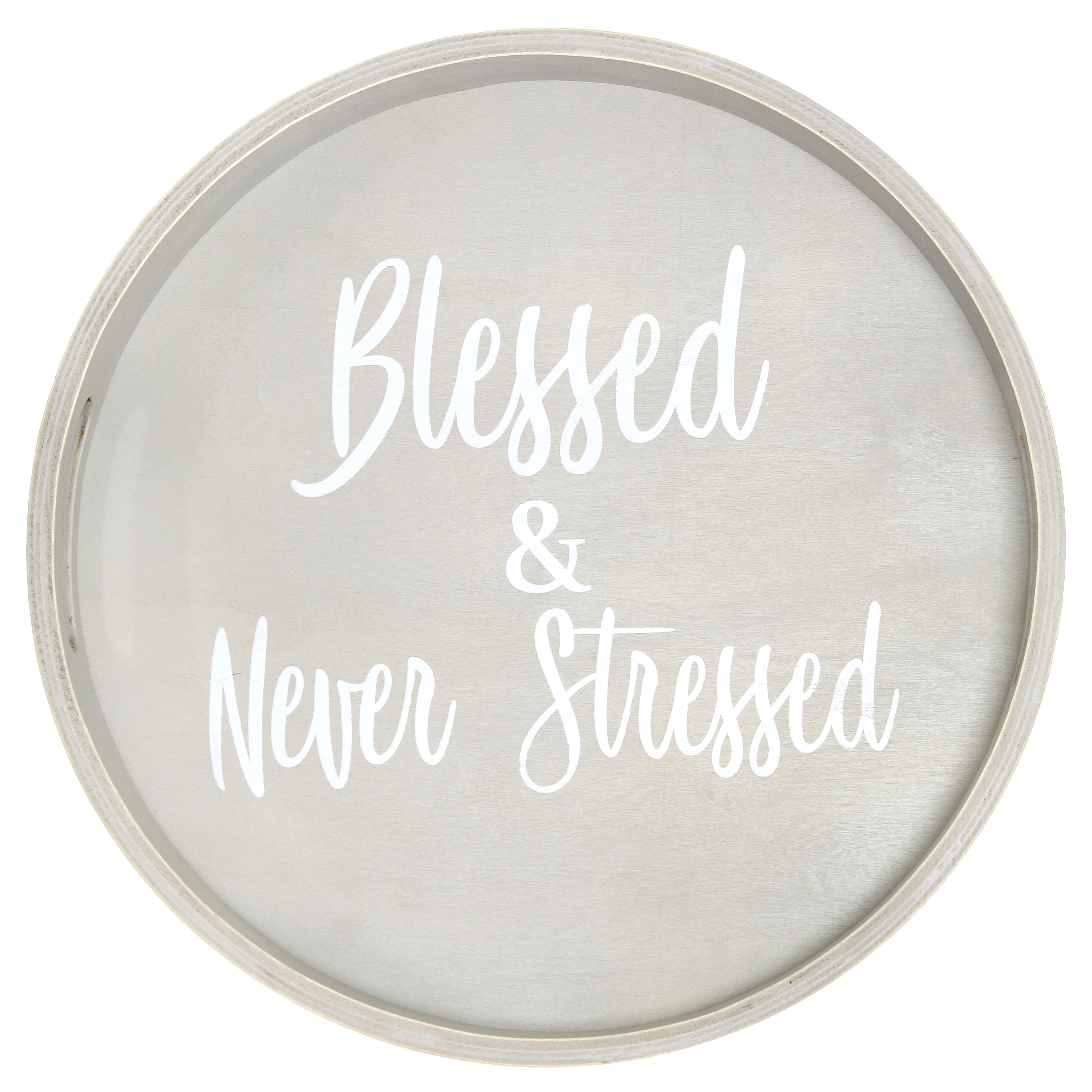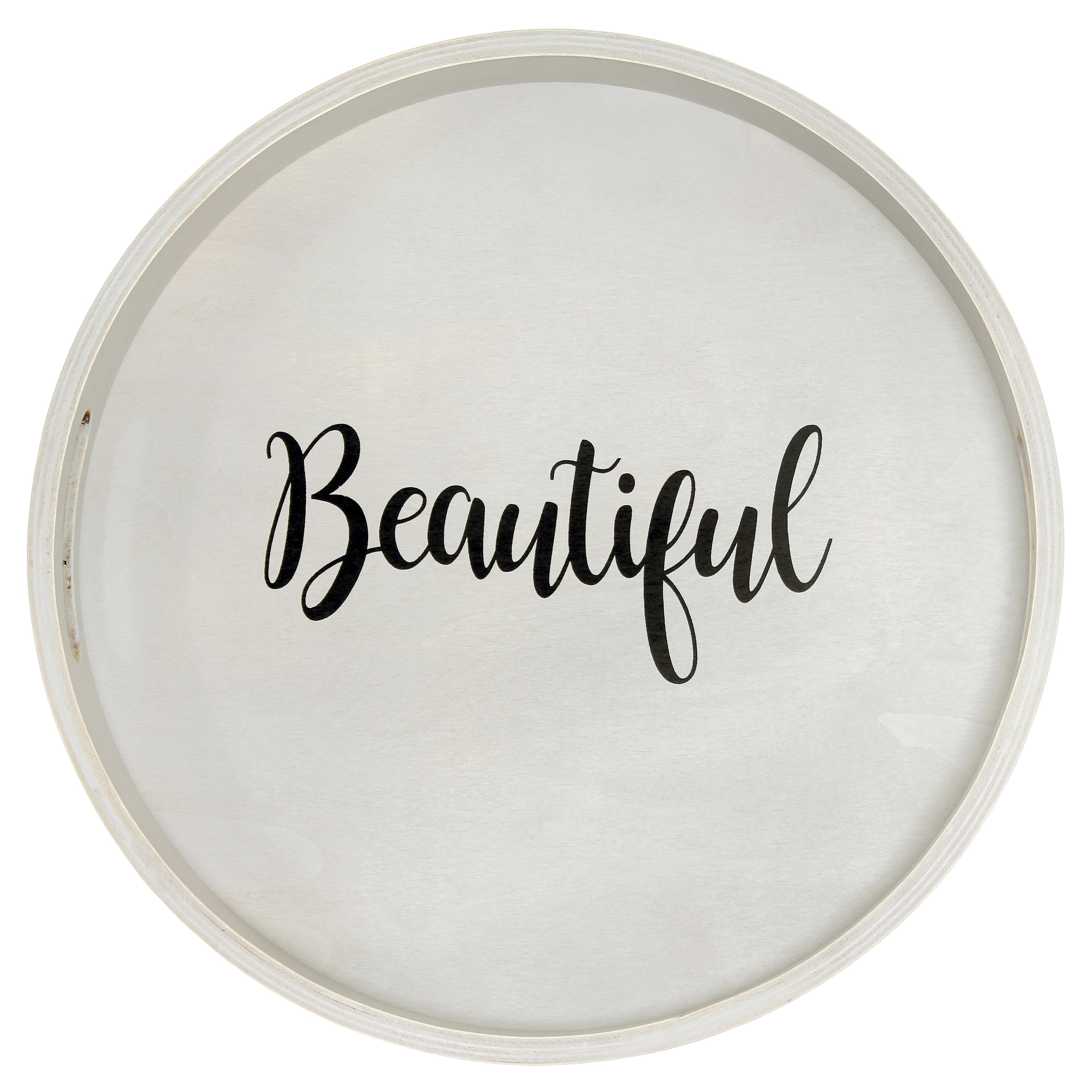 13.75" Round Wood Serving Tray with Handles & Positive Message