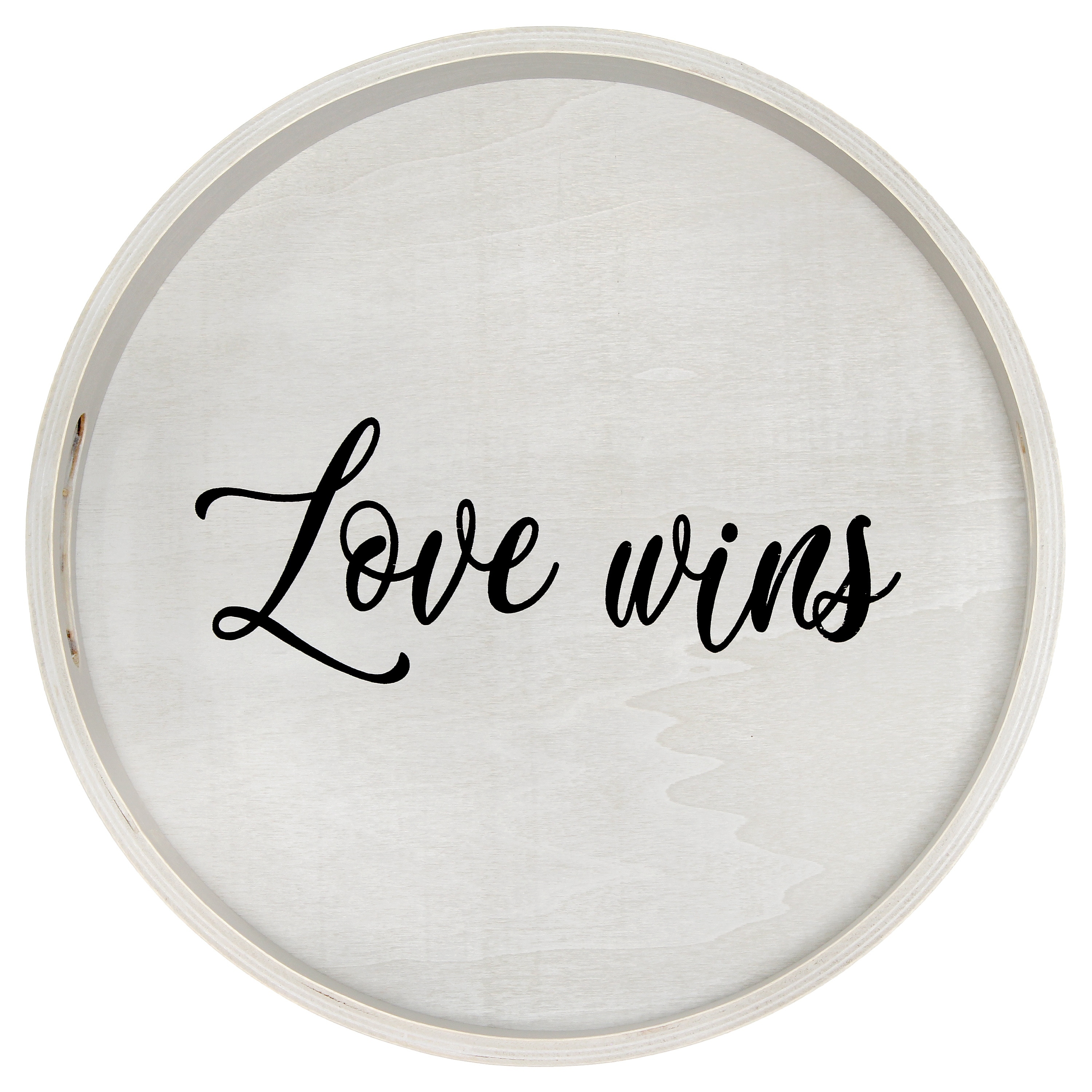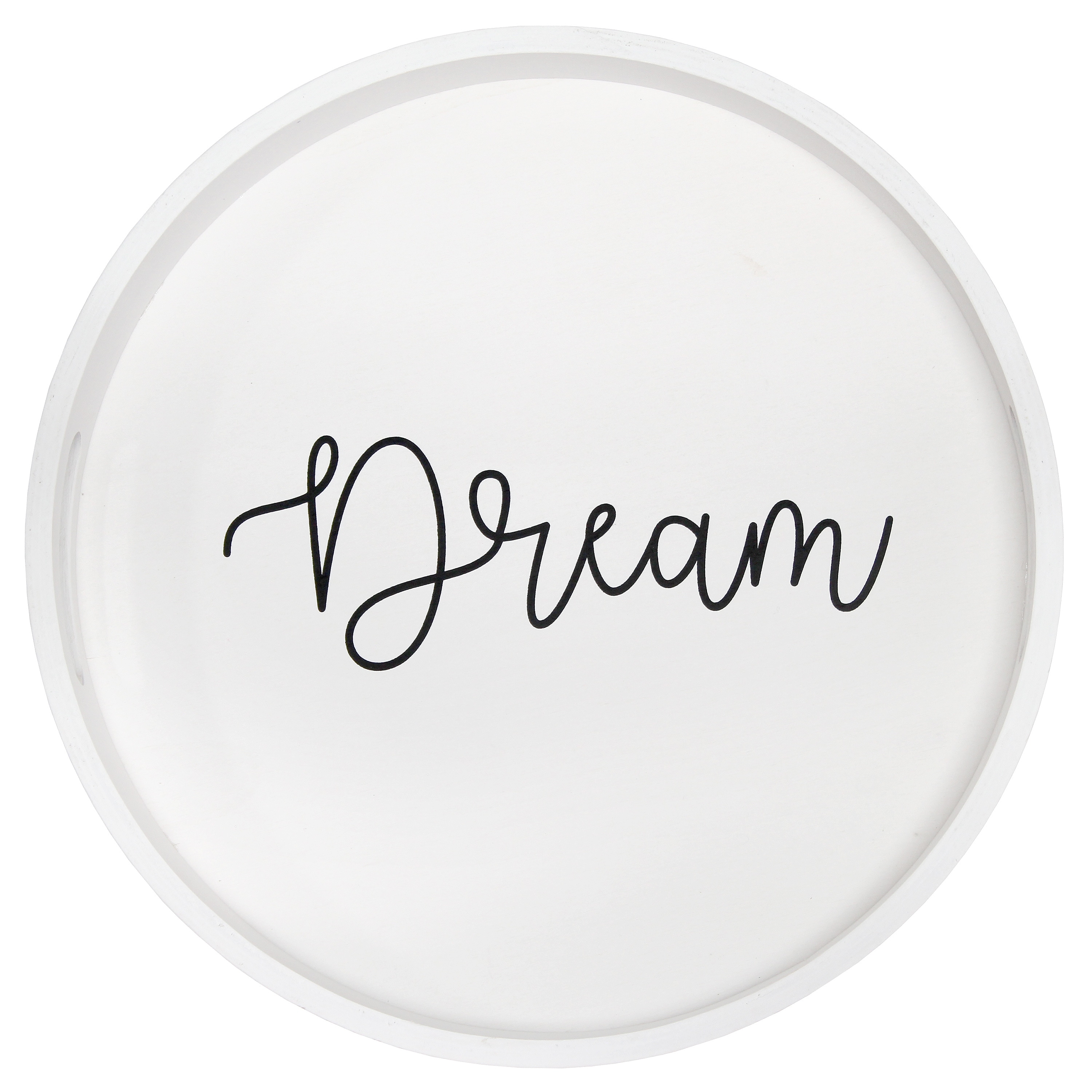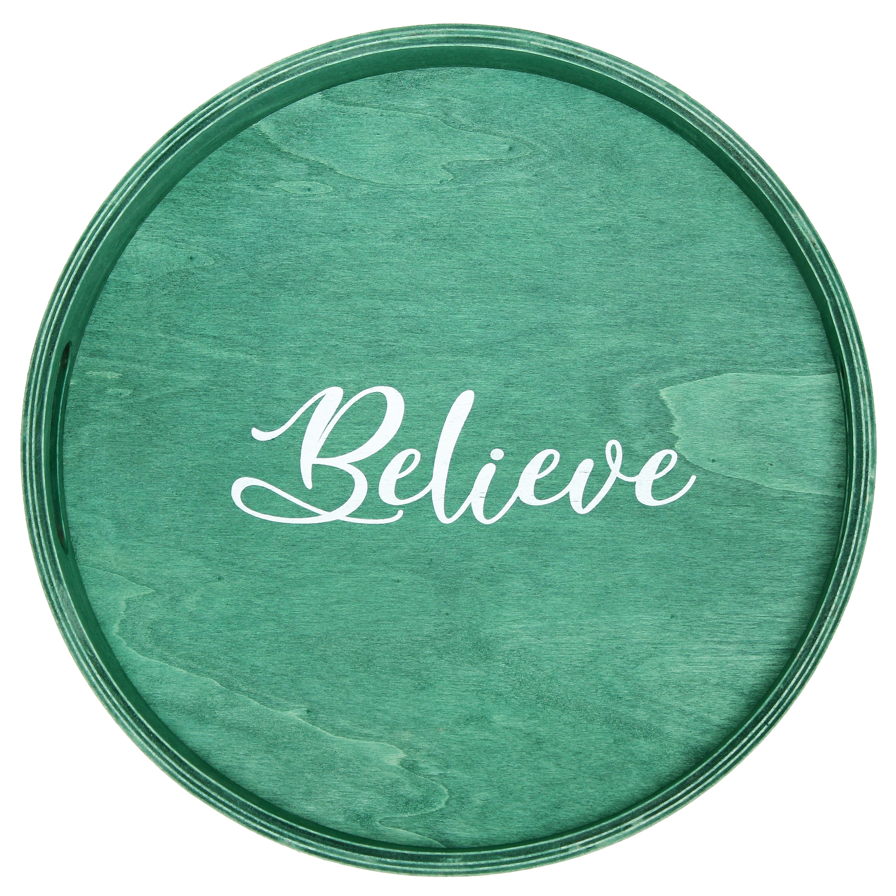 13.75" Round Wood Serving Tray with Handles & Positive Message