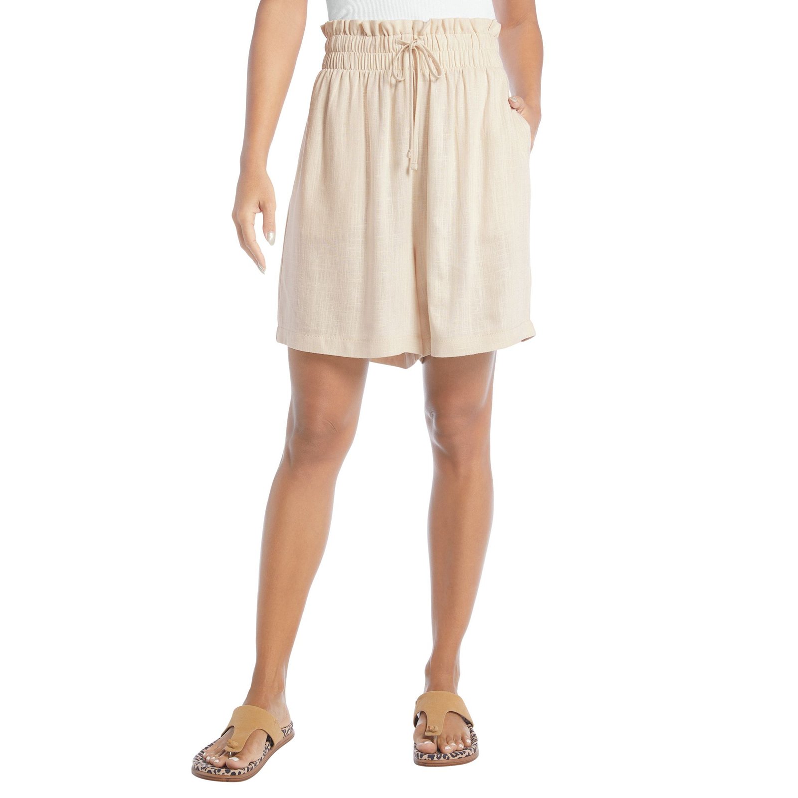 Masseys Paper Bag Waist Linen Blend Short (Size 5X) Cool Beige, Cotton,Linen