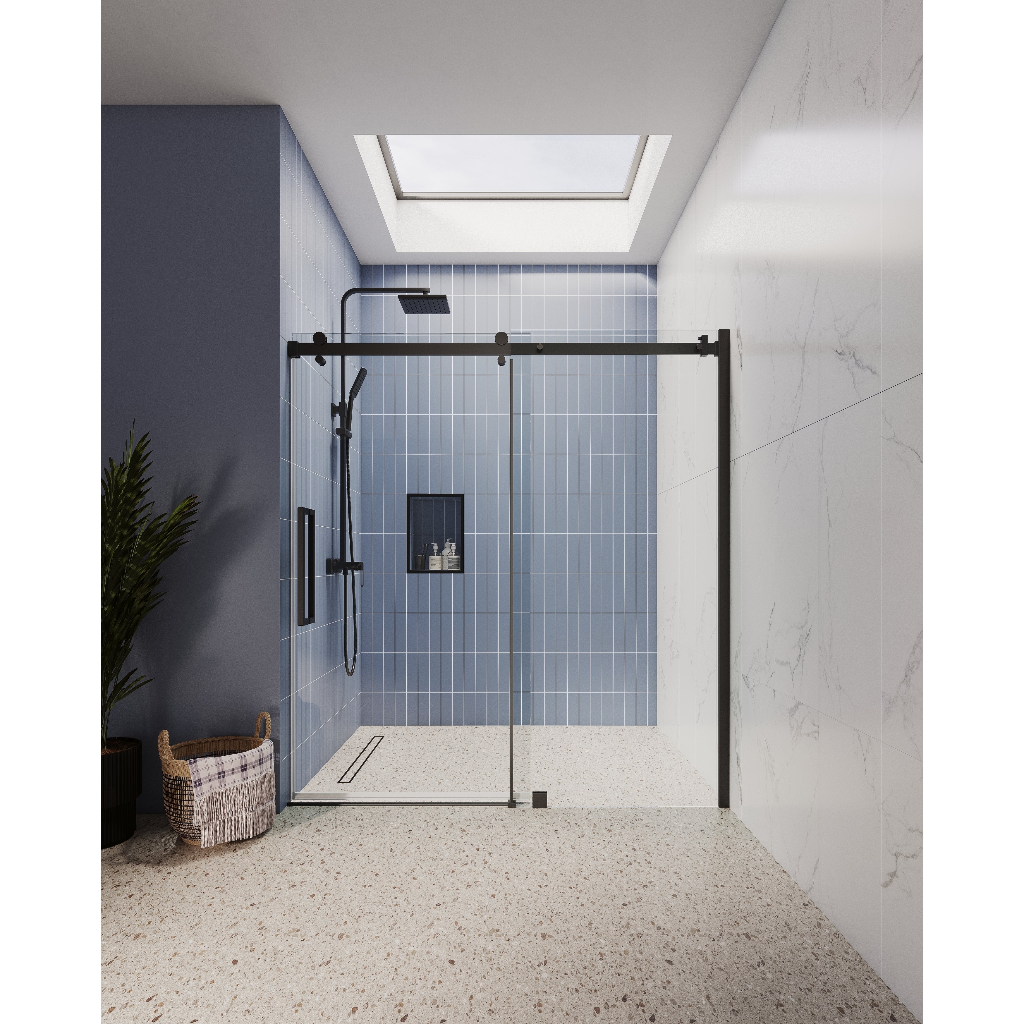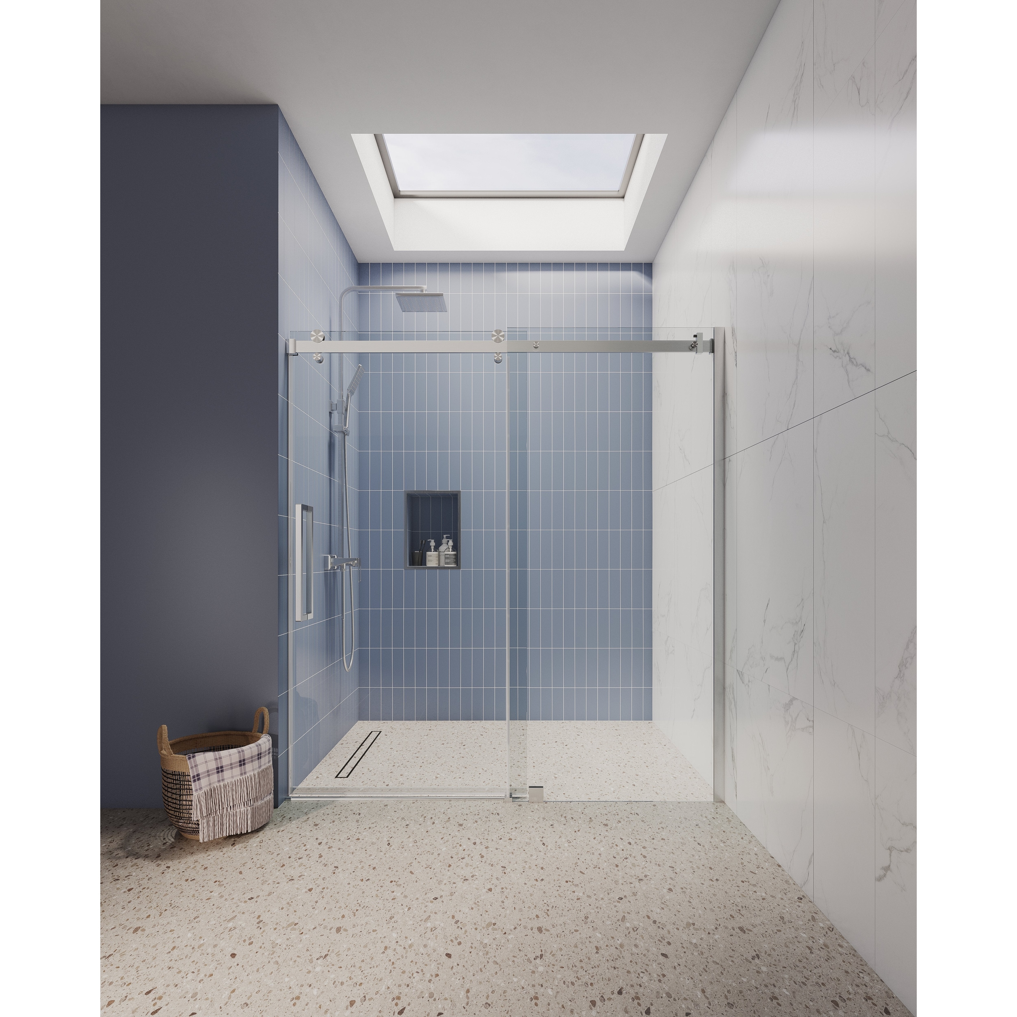 Glassic SI Series 56" - 60"W x 75"H Contemporary Frameless Single Sliding Shower Doors With 3/8" Clear Tempered Glass