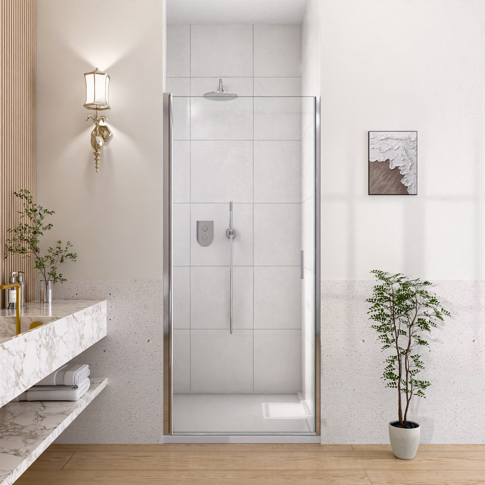 GDFStudio - Modern America Design Semi-Frameless Circular Pivot Shower Door with 1/4" SGCC Tempered Glass & Magnetic Soft-close