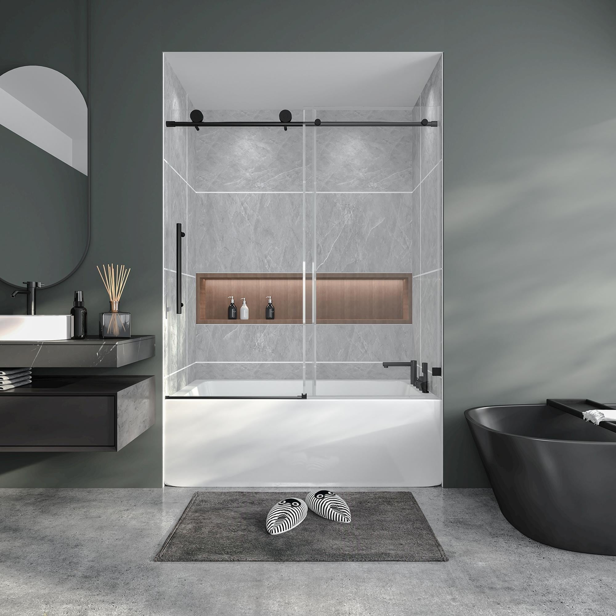 Glassic SI Series 68" - 72" W x 75" H Contemporary Frameless Single Sliding Shower Doors With 3/8" Clear Tempered Glass
