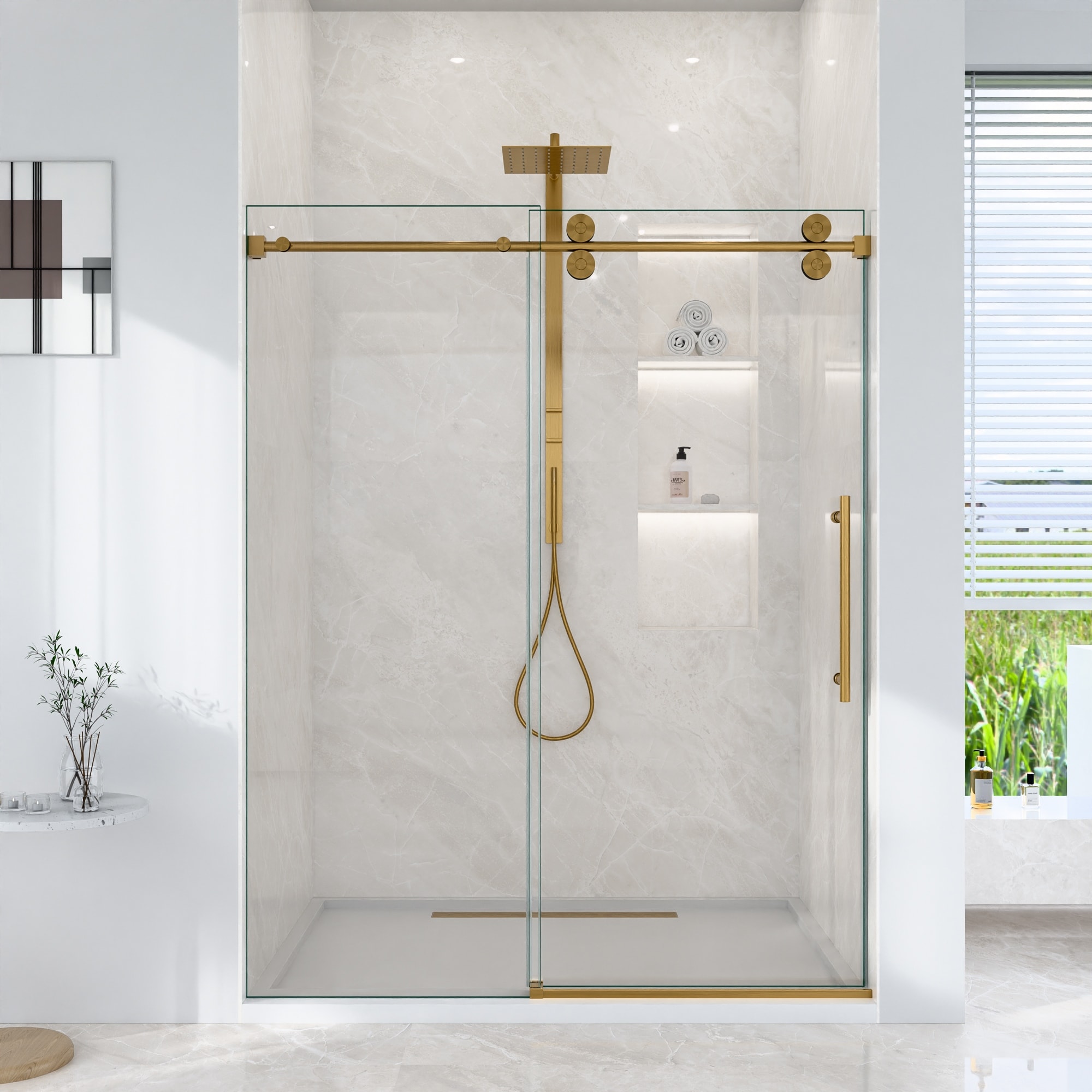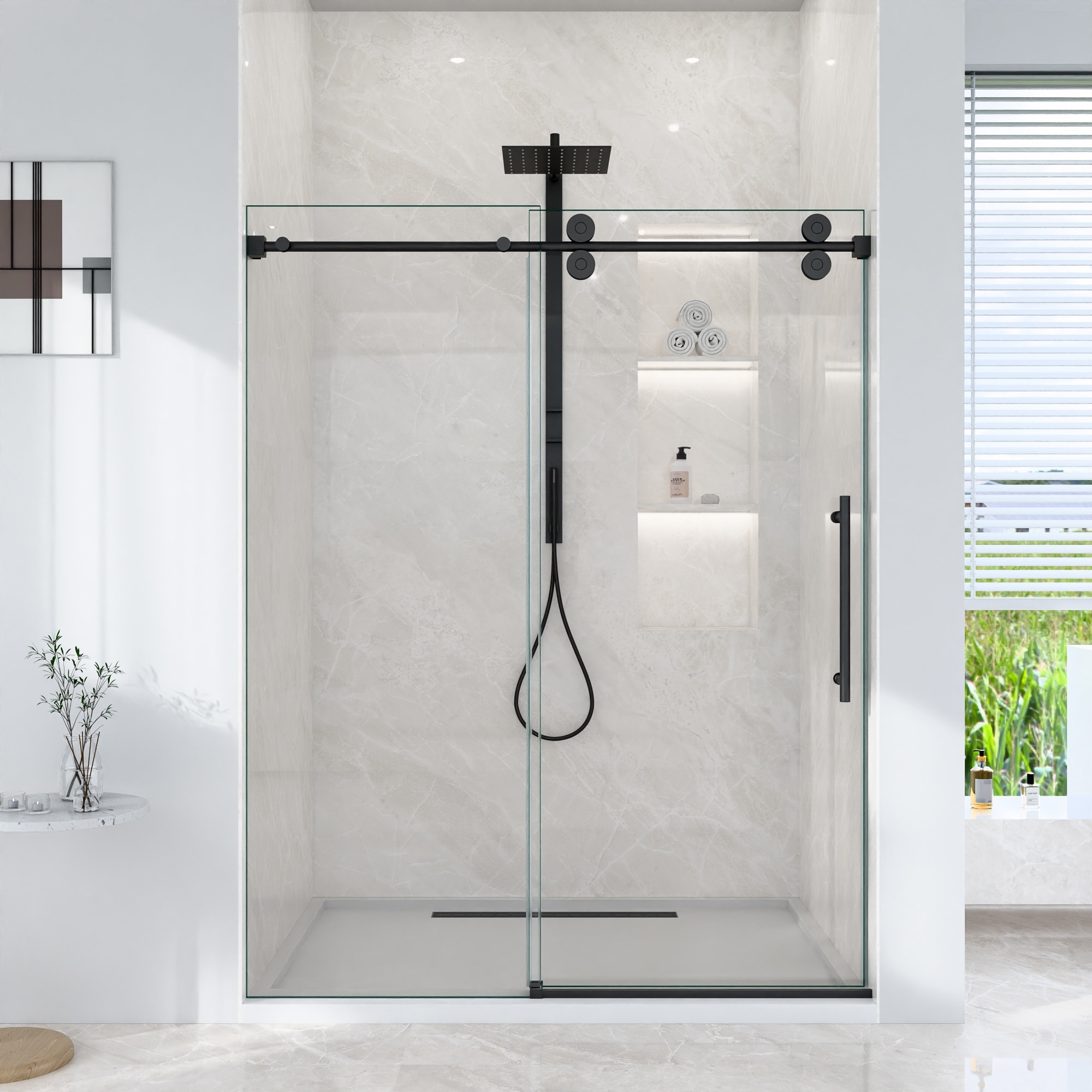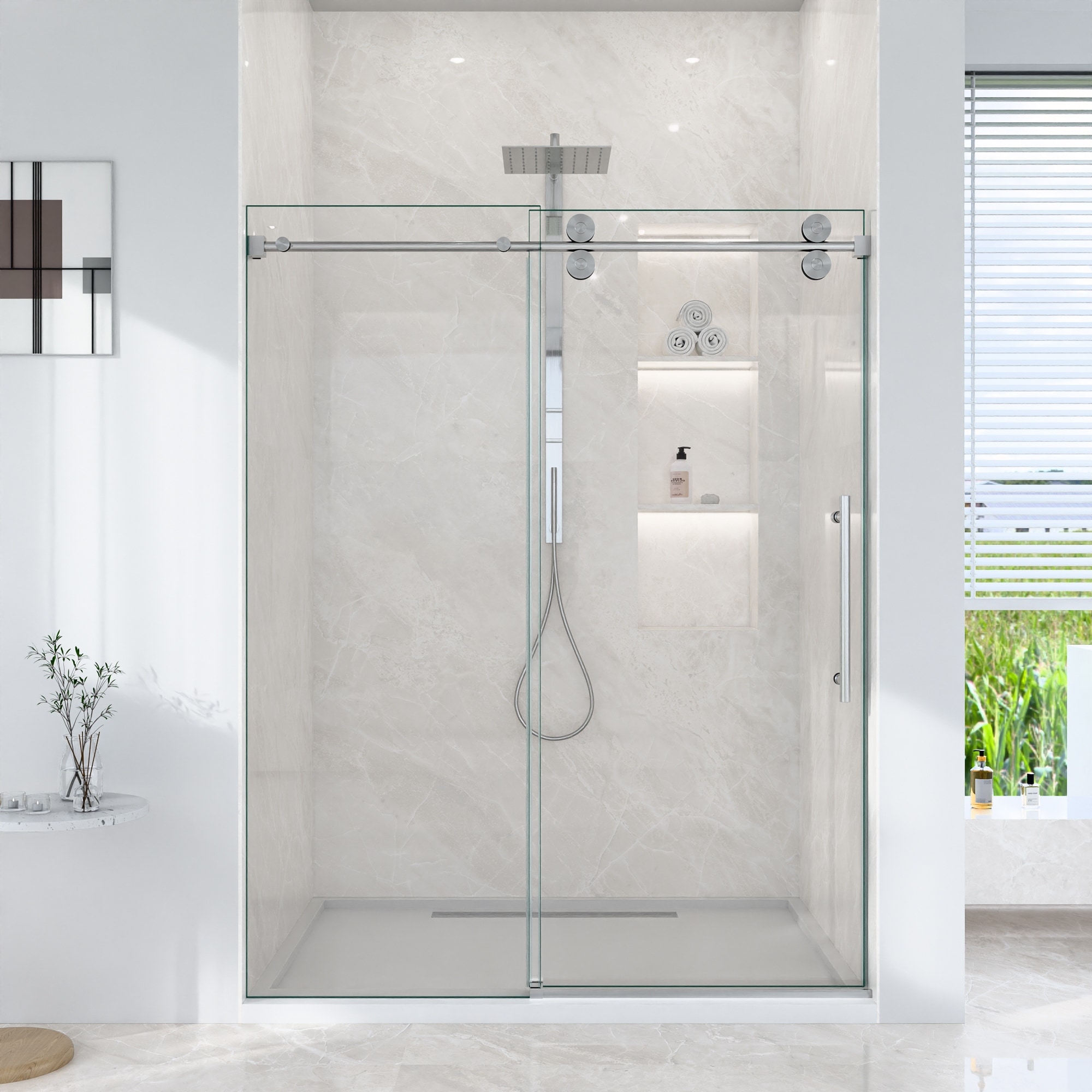 GDFStudio - Modern America Design Frameless Single Sliding Shower Door with 5/16" SGCC Tempered Glass & Stainless Steel Hardware