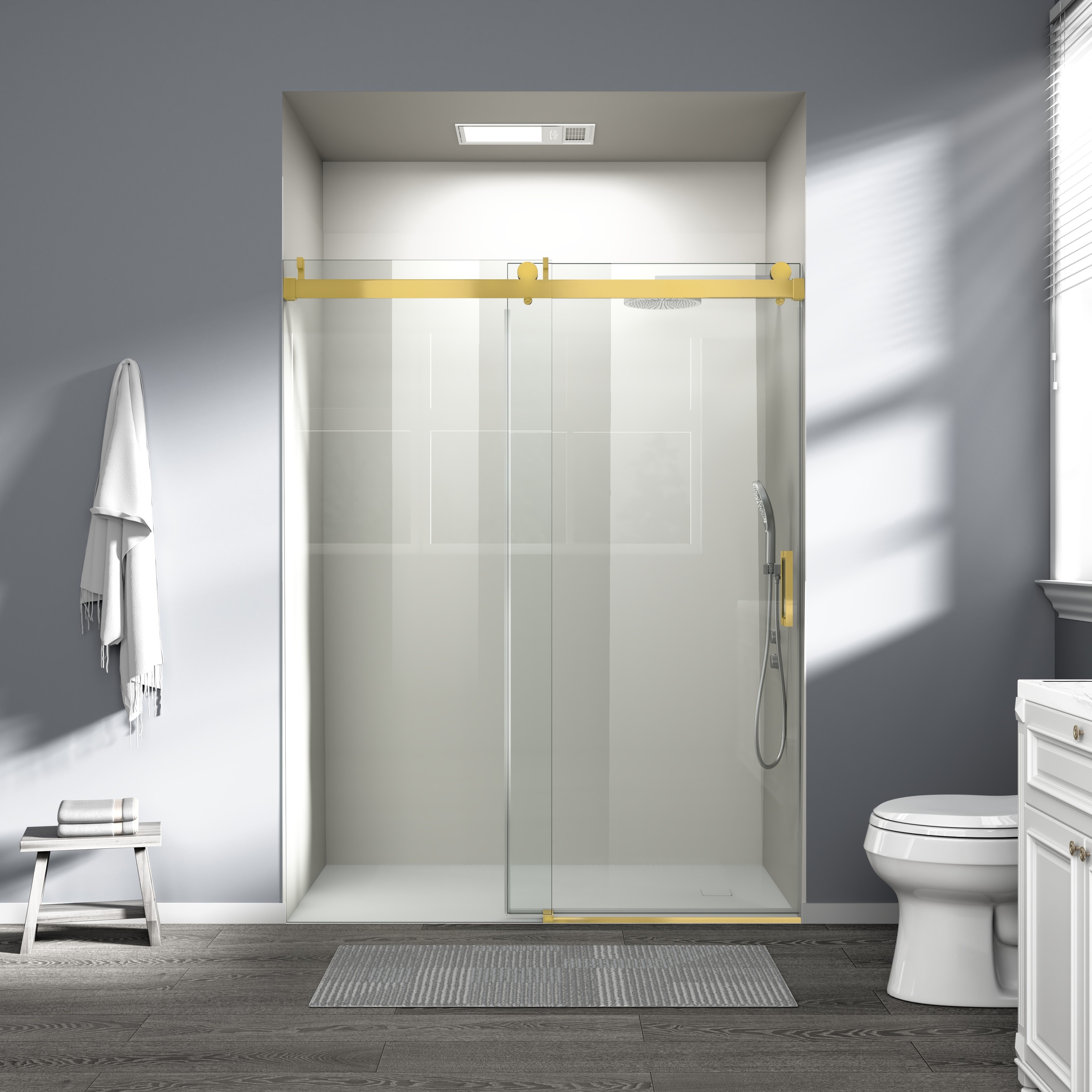 ABRUZZO 56-60" W x 76" H Frameless Soft-Closing Single Sliding Shower Door 1/4" (6mm) Explosion-Proof Tempered Glass