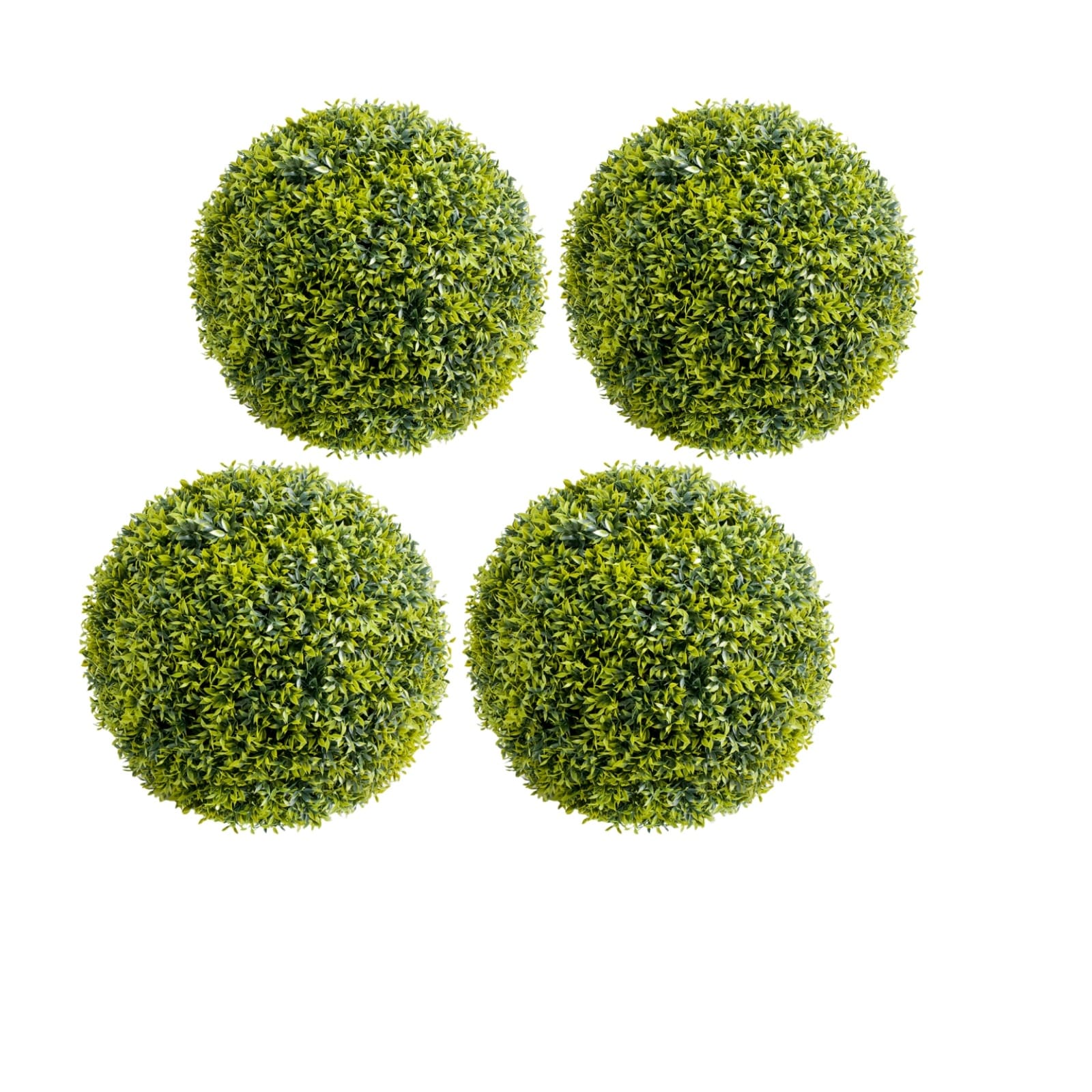 Artificial Plant Topiary Ball Set of 2, Decorative Artificial Boxwood Balls with White Flowers