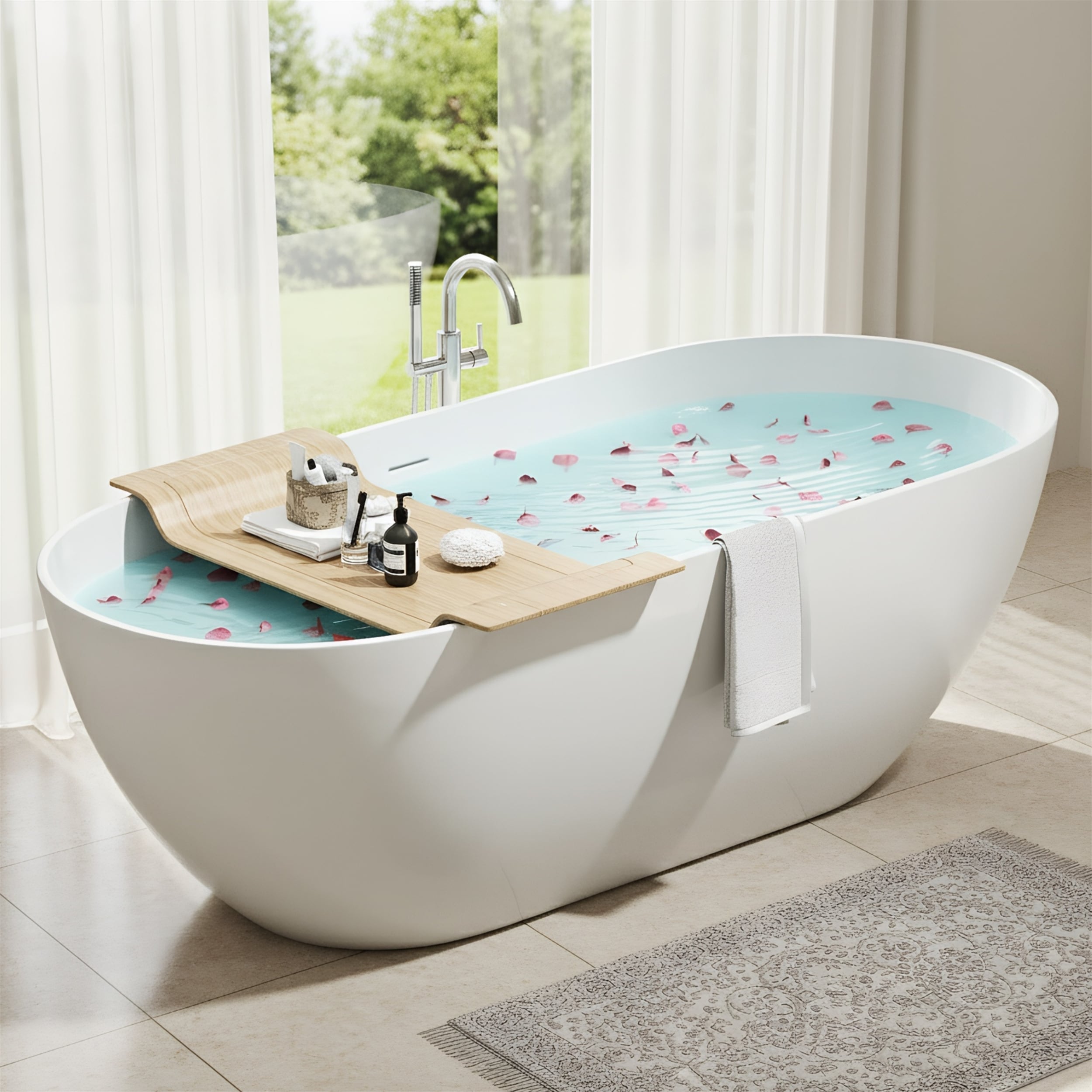 MEDUNJESS 69'' Freestanding Bathtub Solid Surface Soaking Tub