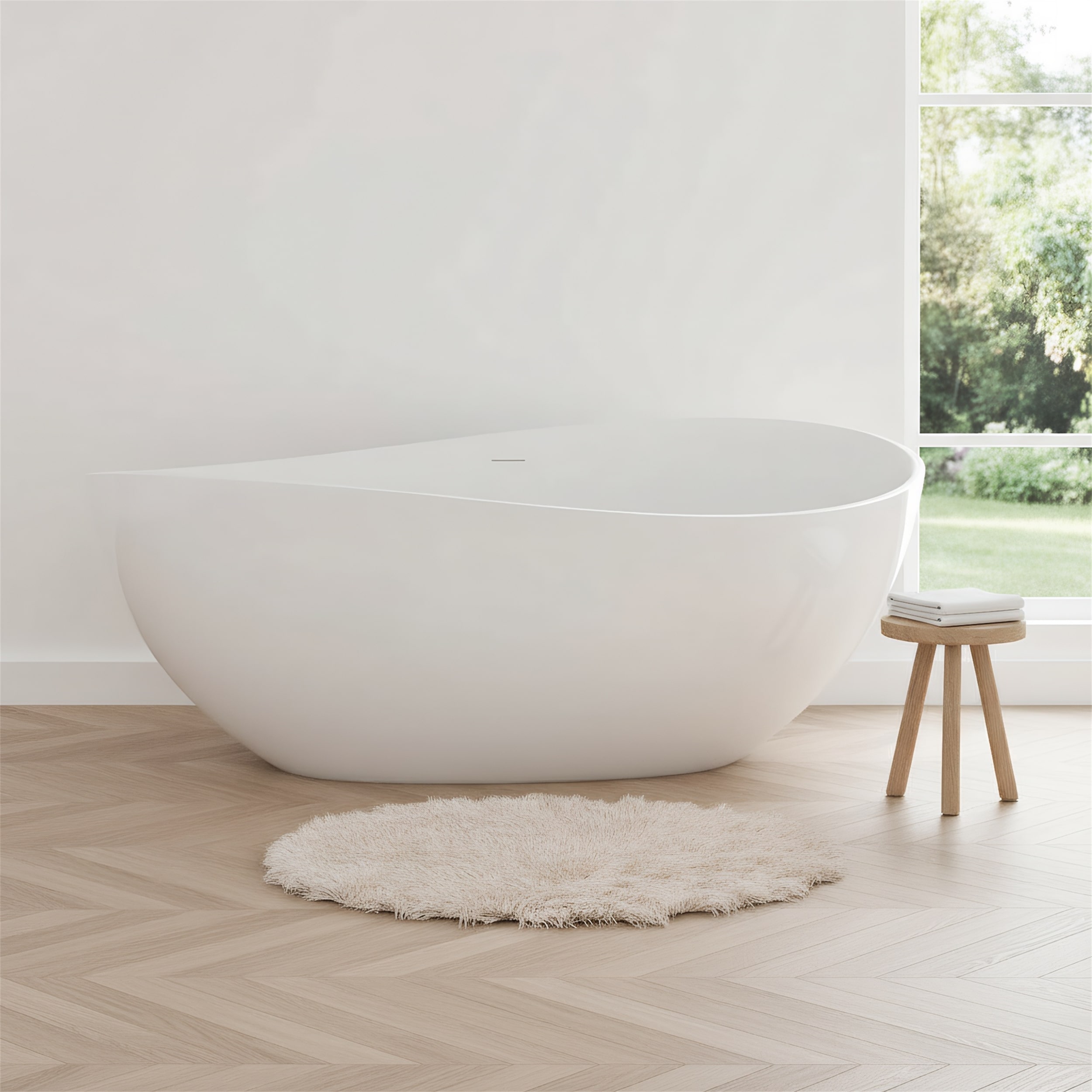 Freestanding Stone Resin Bathtub,Ergonomic Soaking Tub w/ Copper Drain