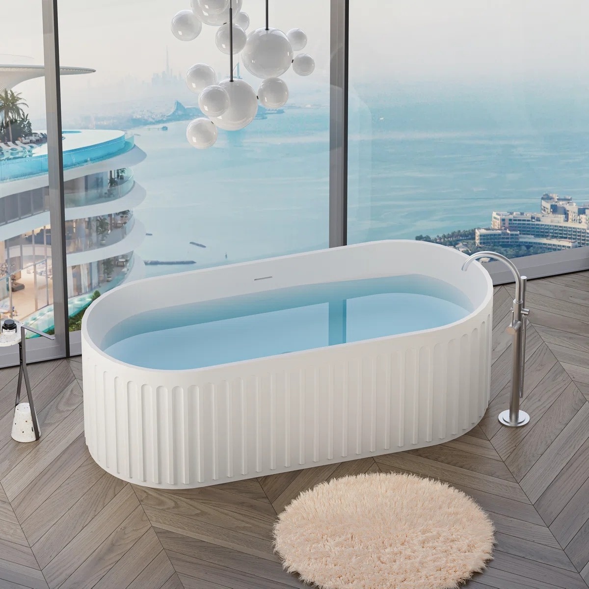 Knightsbrook 64" Freestanding Soaking Solid Surface Bathtub