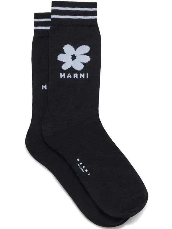 Logo-Jacquard Striped Socks - Black - Marni Underwear