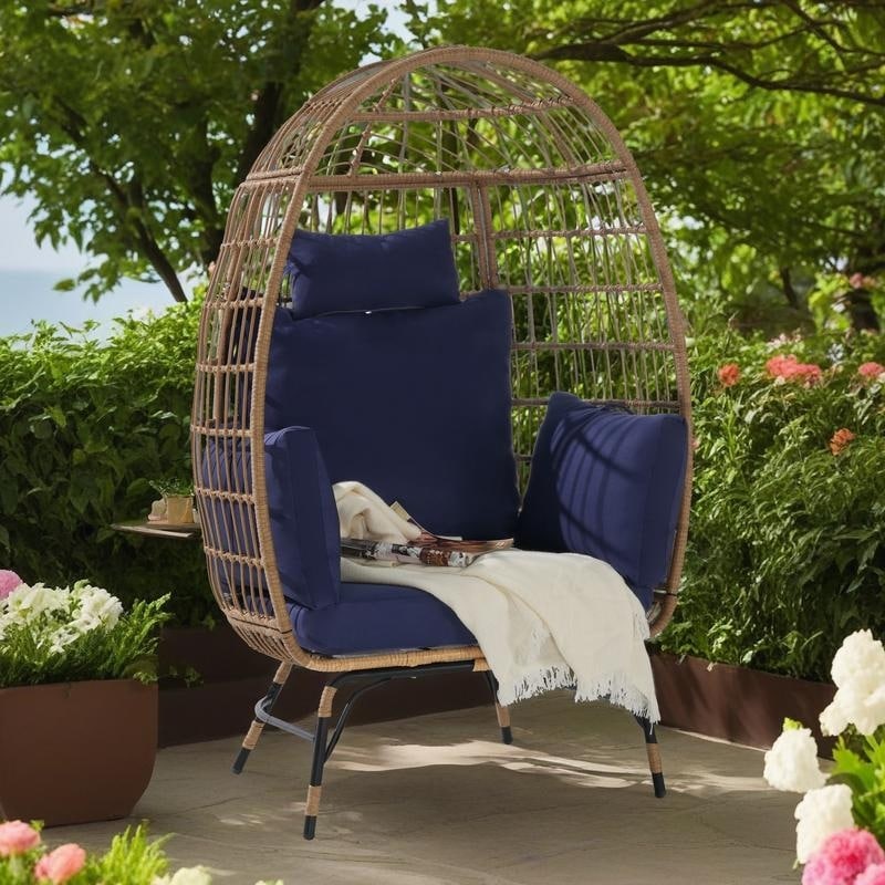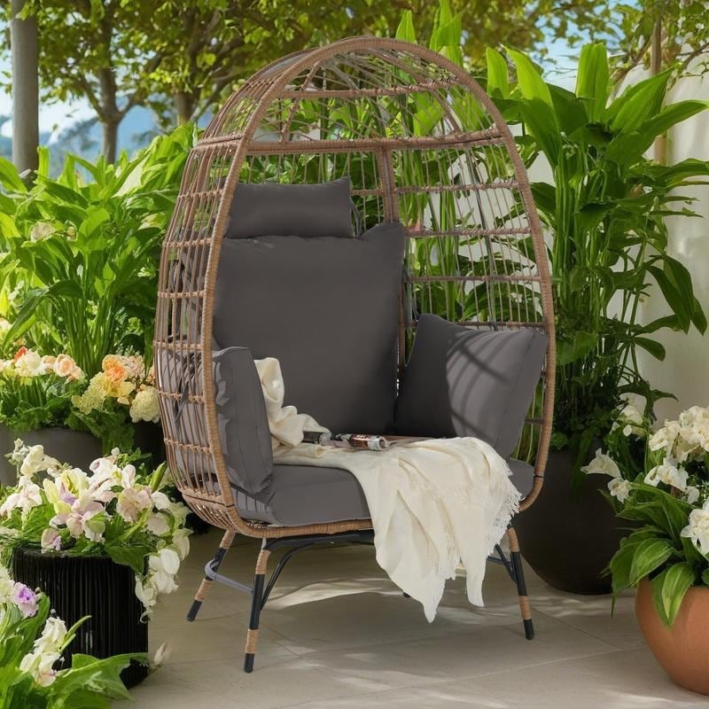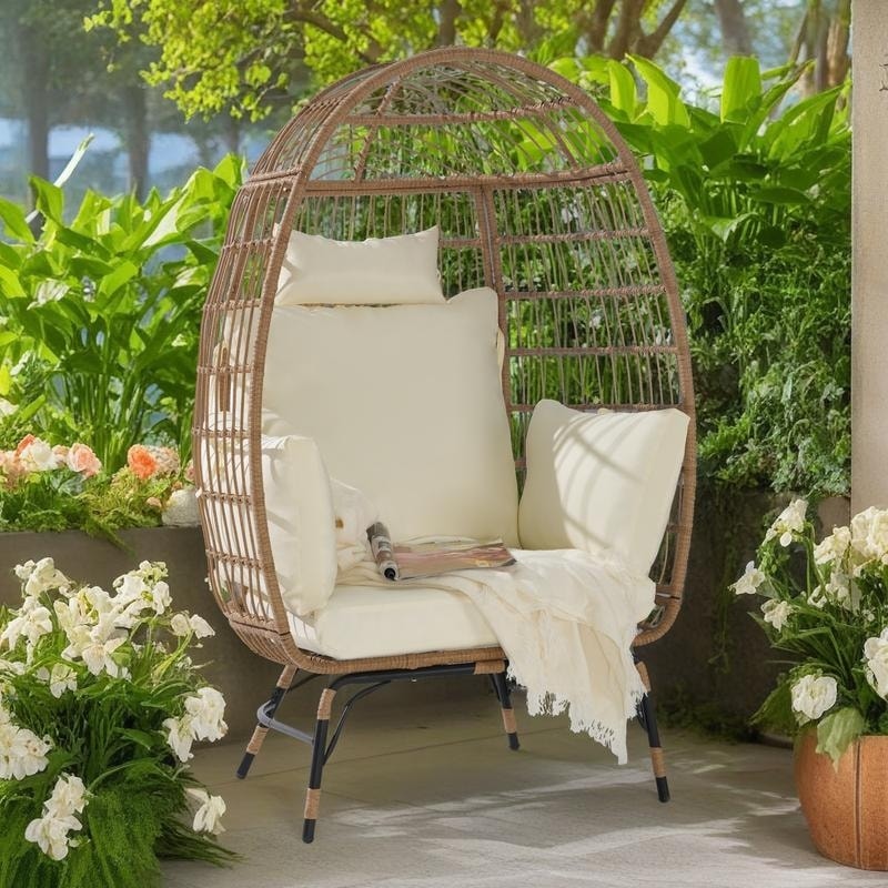 Oversized Outdoor Rattan Wicker Egg Chair with Cushions and Pillows