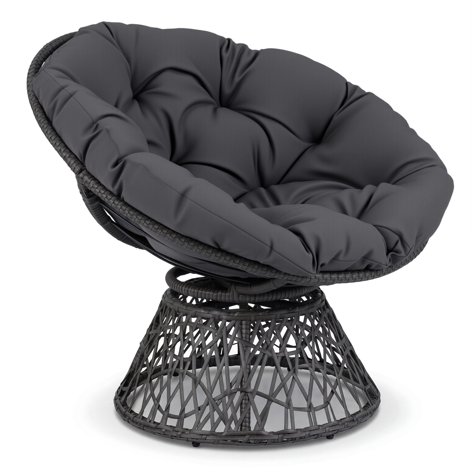 Gymax 360-DegreeSwivel Papasan Chair Round Wicker Lounge Chair w/Thick