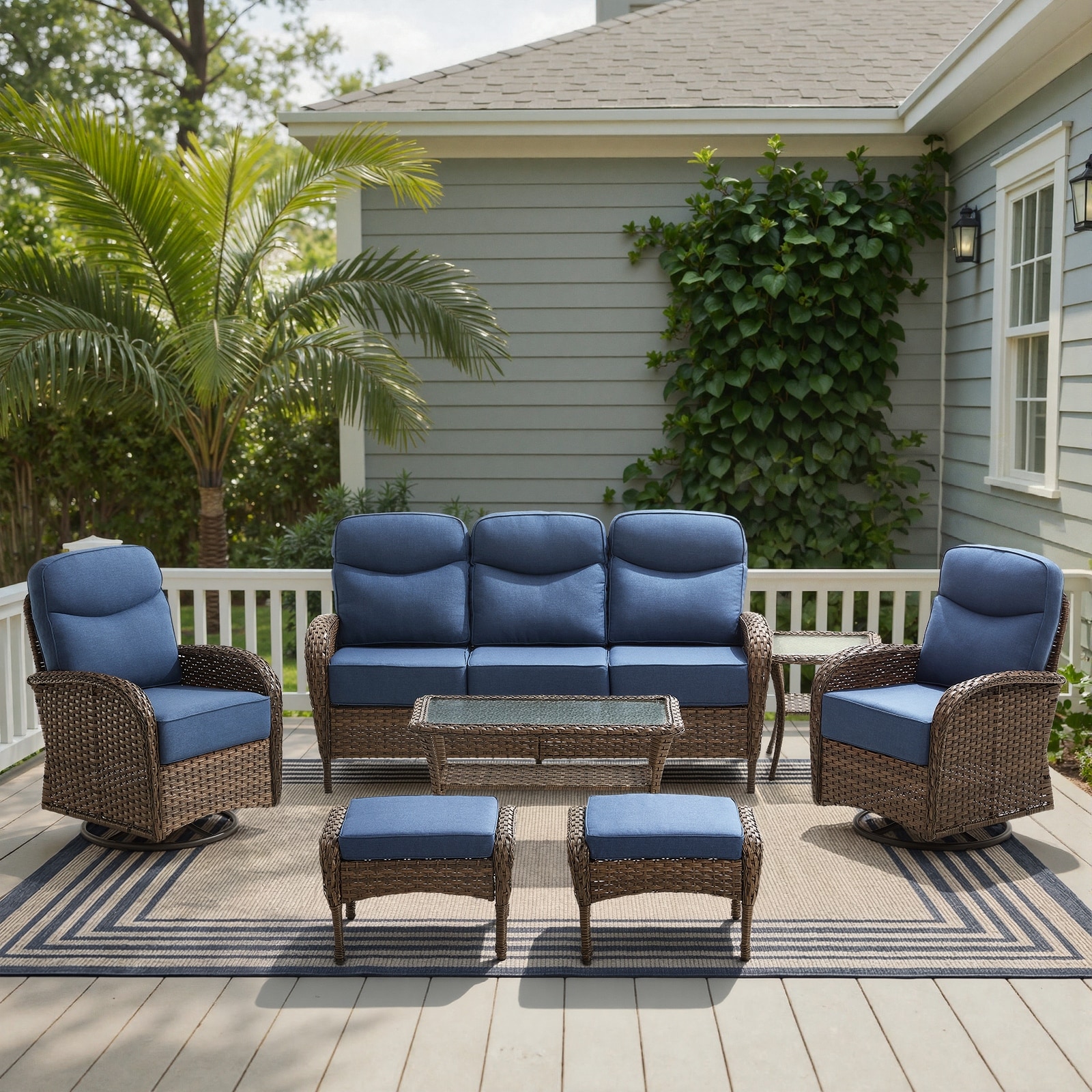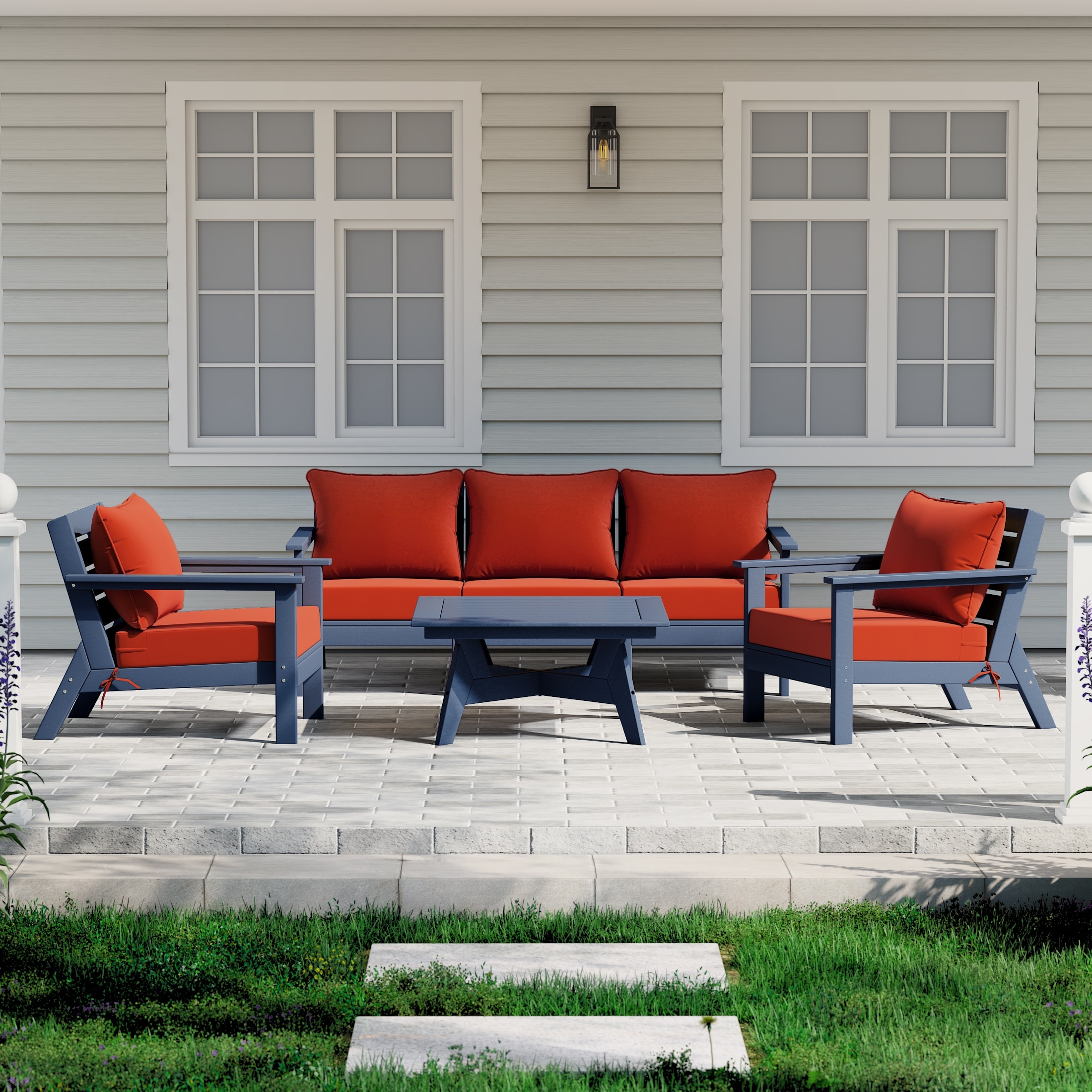 Birchwood All Weather HDPE Outdoor Patio Navy Blue Deep Seating Conversation Set (6-Piece Set)