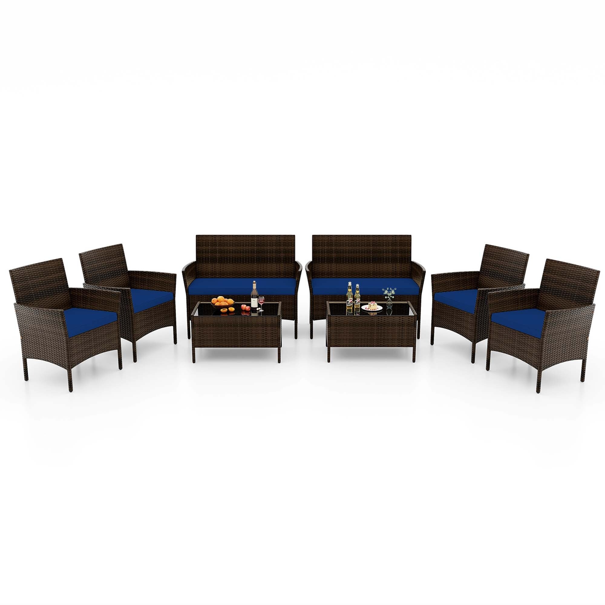 8 PCS Outdoor Rattan Conversation Set Patio Wicker Furniture Set