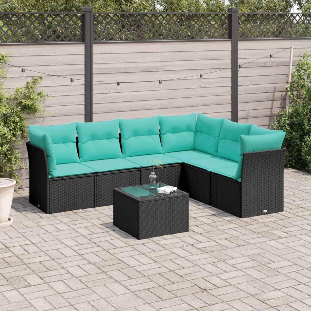 vidaXL 7 Piece Patio Sofa Set with Cushions Black Poly Rattan - 32.2x27.2x46.1