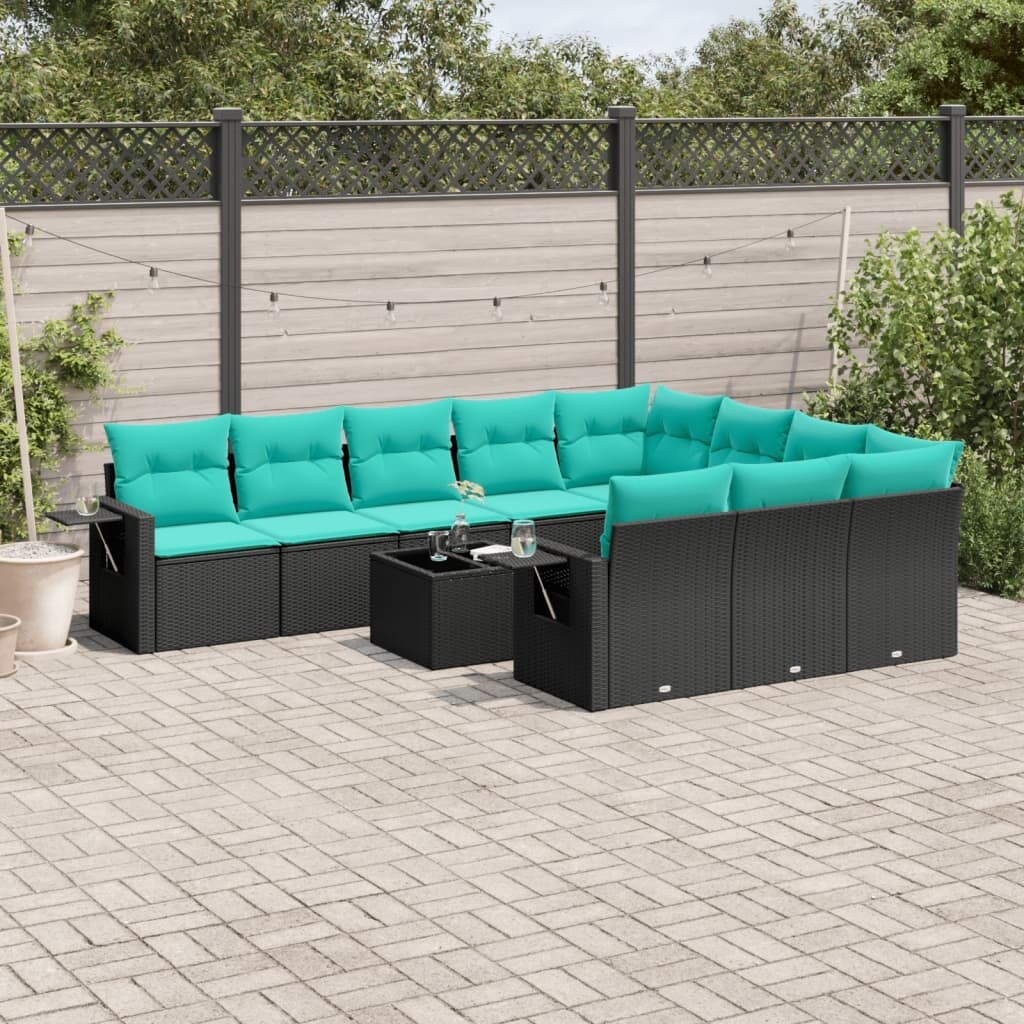 vidaXL 10 Piece Patio Sofa Set with Cushions Black Poly Rattan