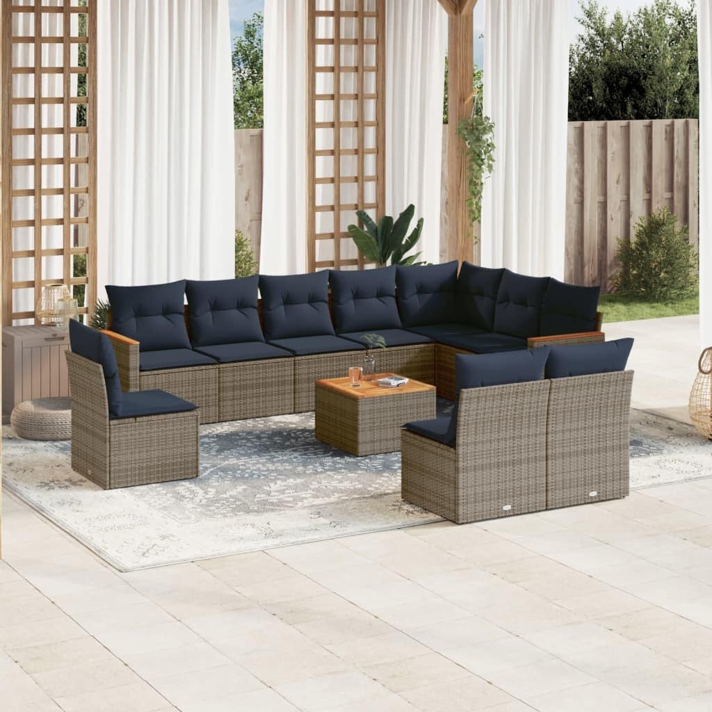 vidaXL Patio Sofa Set with Cushions Outdoor Conversation Furniture Poly Rattan - 24.4x 24.4x 27.2