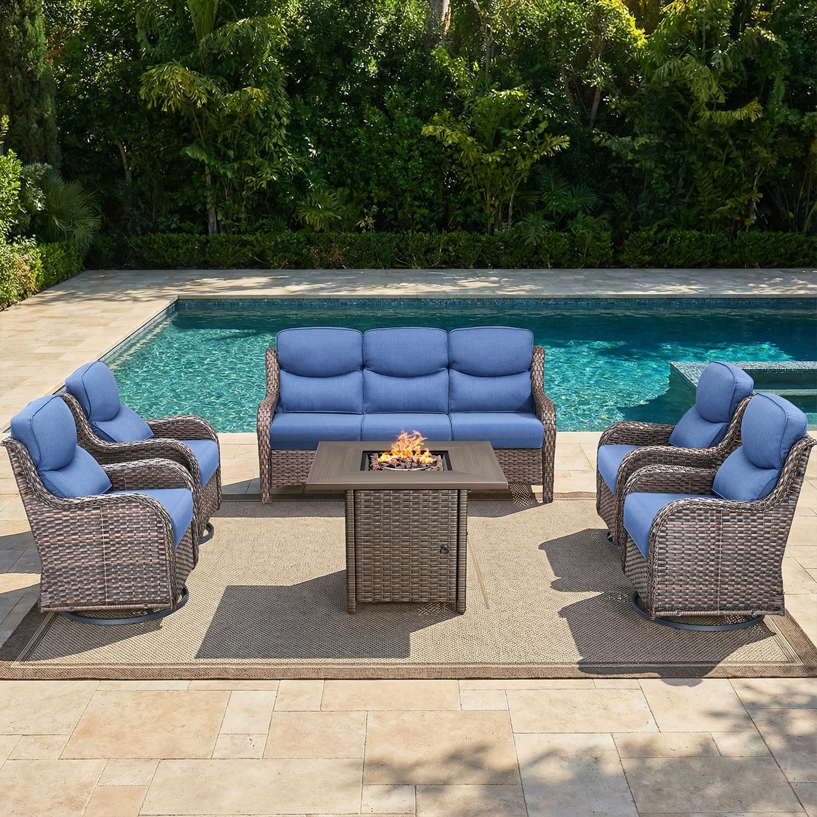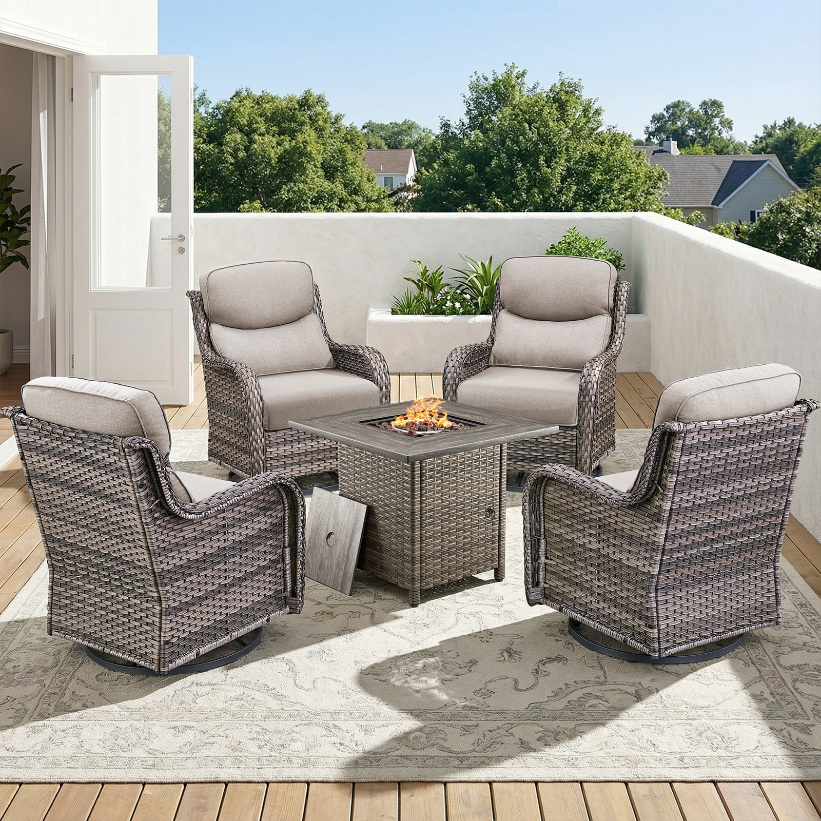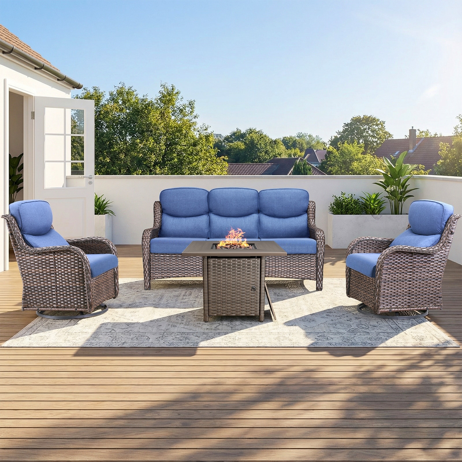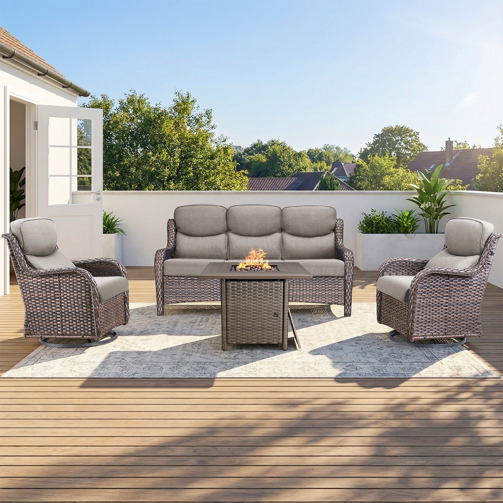 Pocassy Outdoor Propane Fire Pit Table with Sofa Swivel Chair Funiture Set.