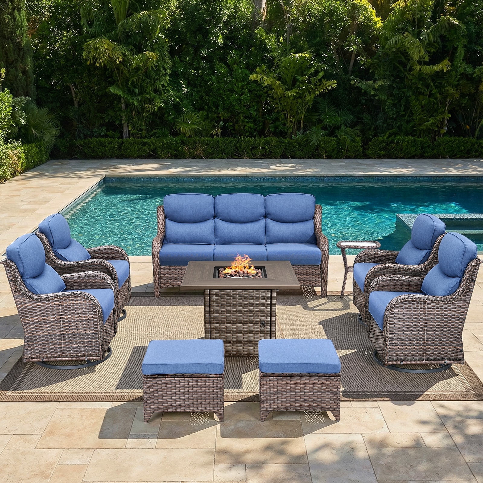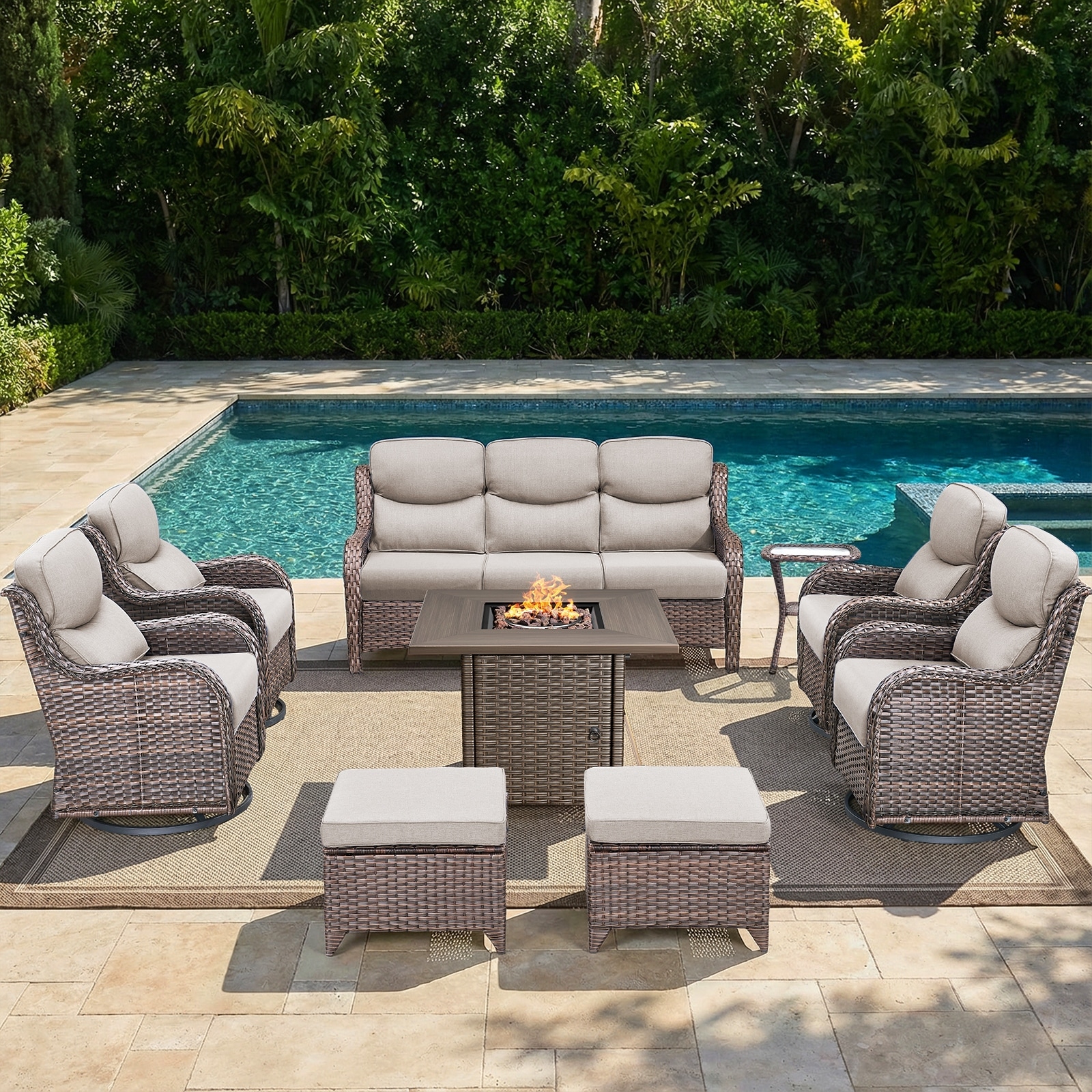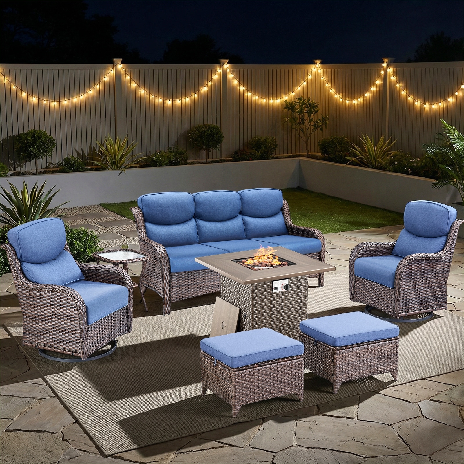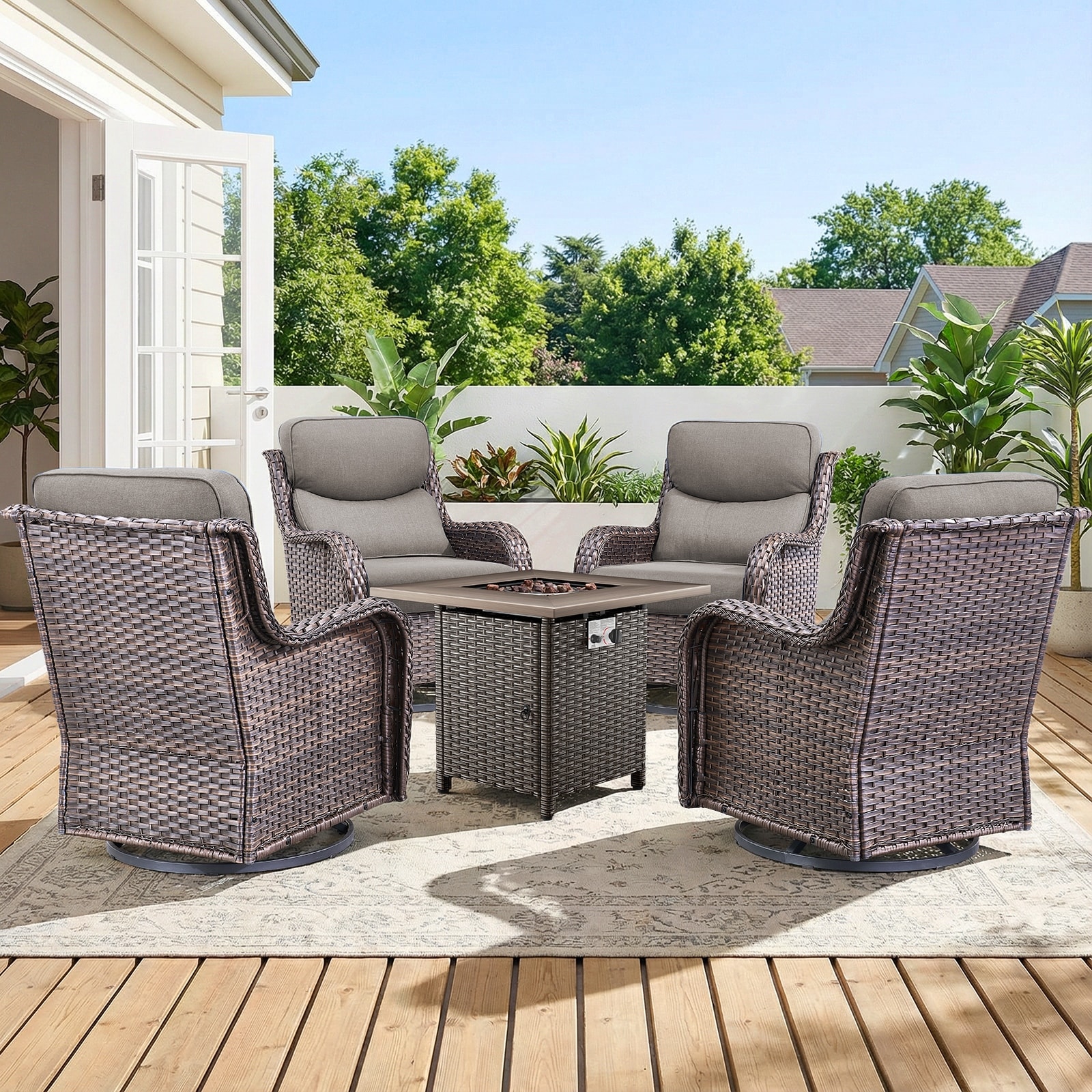 Pocassy Outdoor Propane Fire Pit Table with Sofa Swivel Chair Funiture Set.