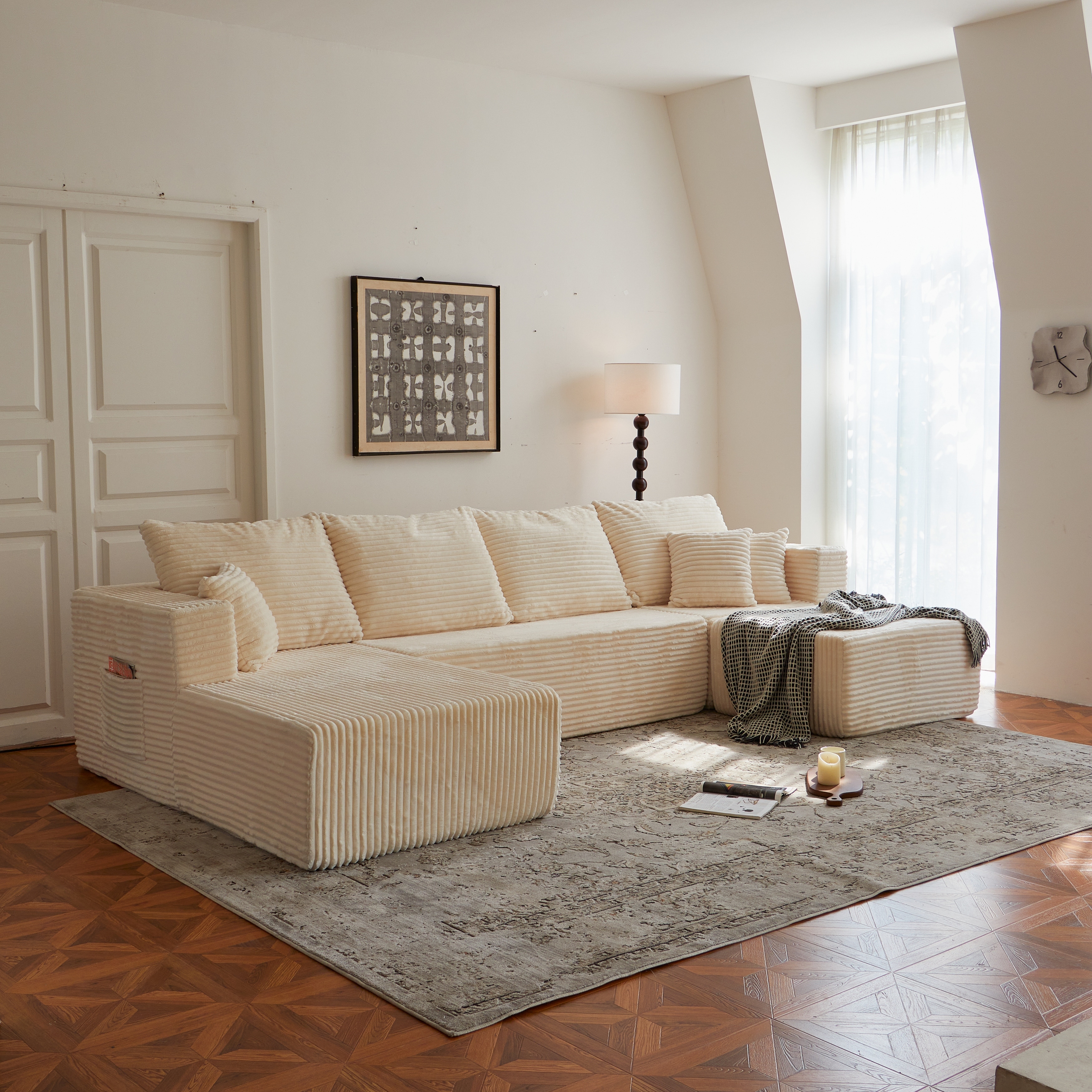 Oversized U-Shaped Sectional Sofa Modern Living Room Couch with Chaise Lounge, 129" Corduroy Upholstered Sofa, Thicked Cushions