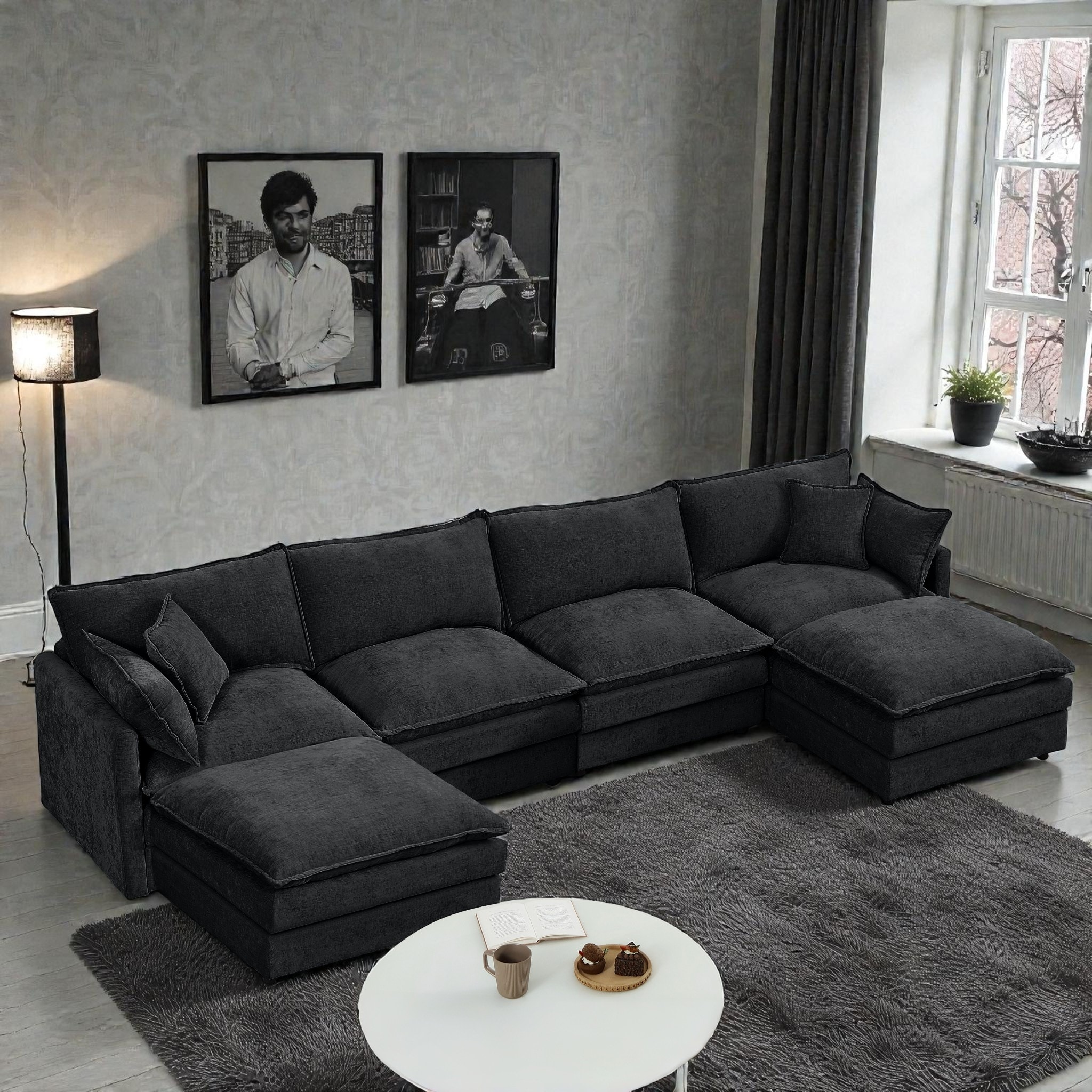 Modular U-Shaped Sectional Sofa with Movable Ottomans, Chenille Upholstery, Memory Foam Cushions and Solid Wood Frame