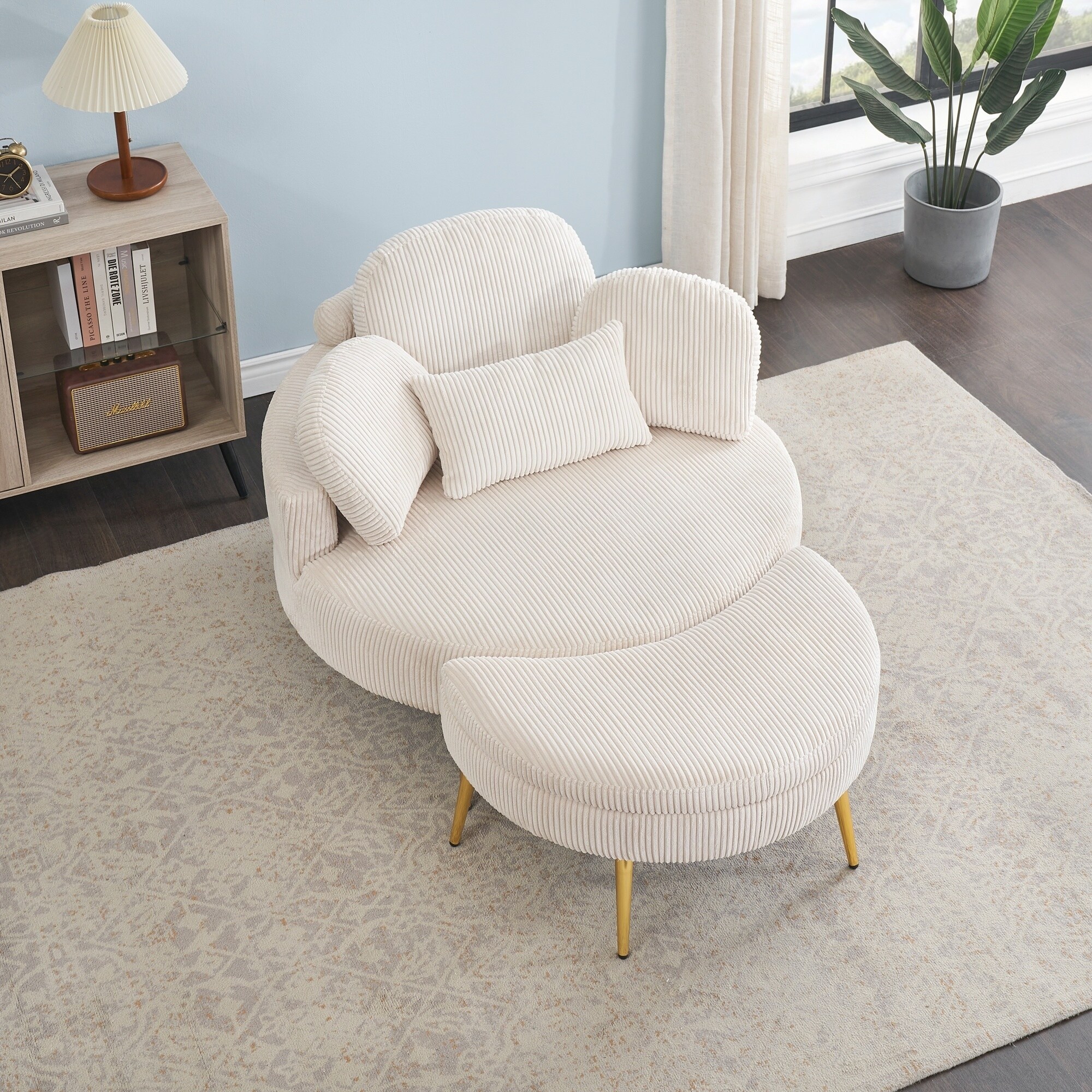 Round Comfortable Corduroy Single Chair with Adjustable Headrest and Removable Pillowcases for Small Spaces and Versatile Use