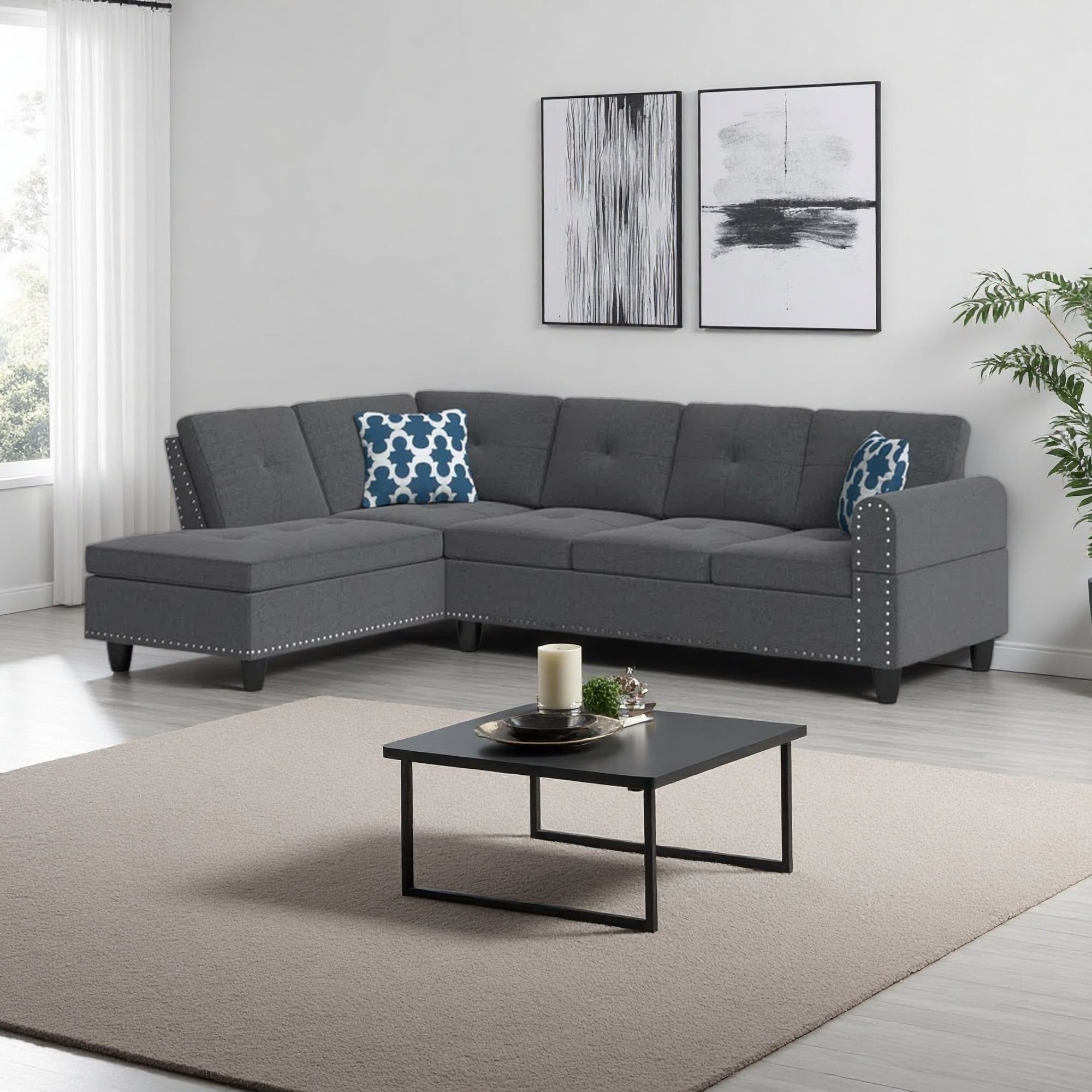 Oversized L Shaped Modular Sectional Sofa, 4 PCS Free Combination Tufted Cloud Sofa Couch with 4 Pillows