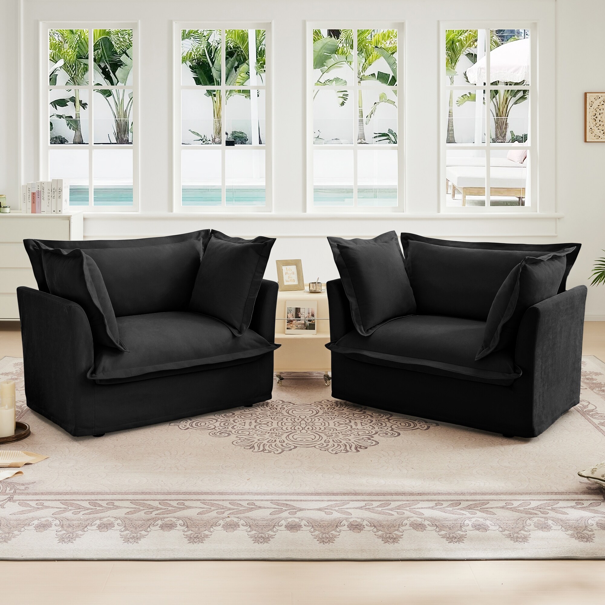 Set of 2 Slipcovered Armchairs, Deep Seat Accent Chair Set, Armchair Sets with Large Soft Pillows, Chenille Fabric