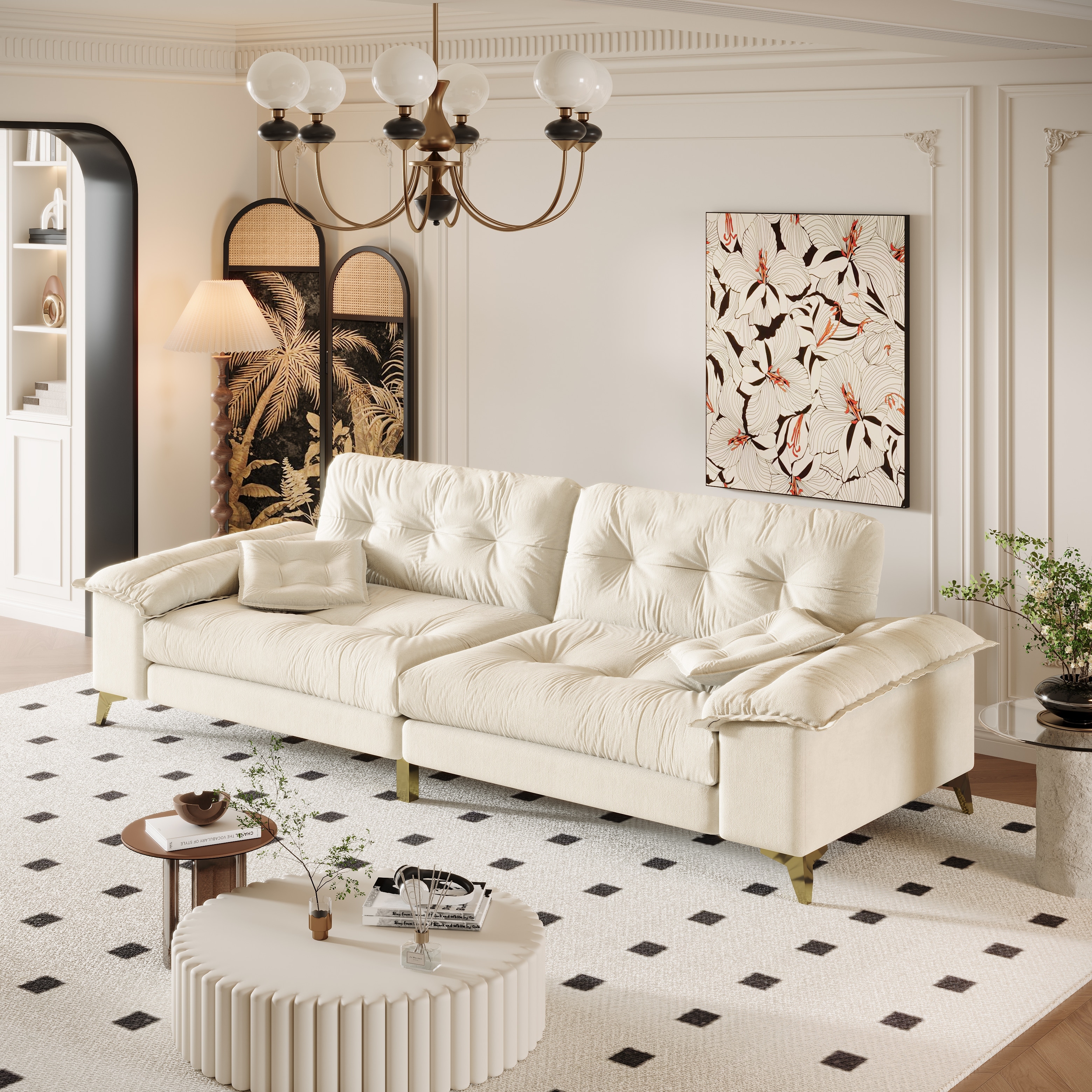 Loveseat Sofa with Removable Armrests, Tufted Sleeper Sofa with Metal Legs, Upholstered Lounge Sofa Couch with 2 Pillows