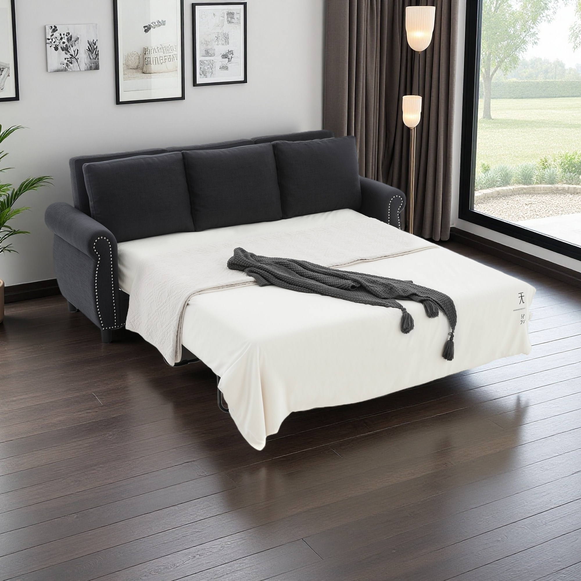 81.5" Linen Fabric Sleeper Sofa Bed with Pull-Out Mattress and 3-Seater Design