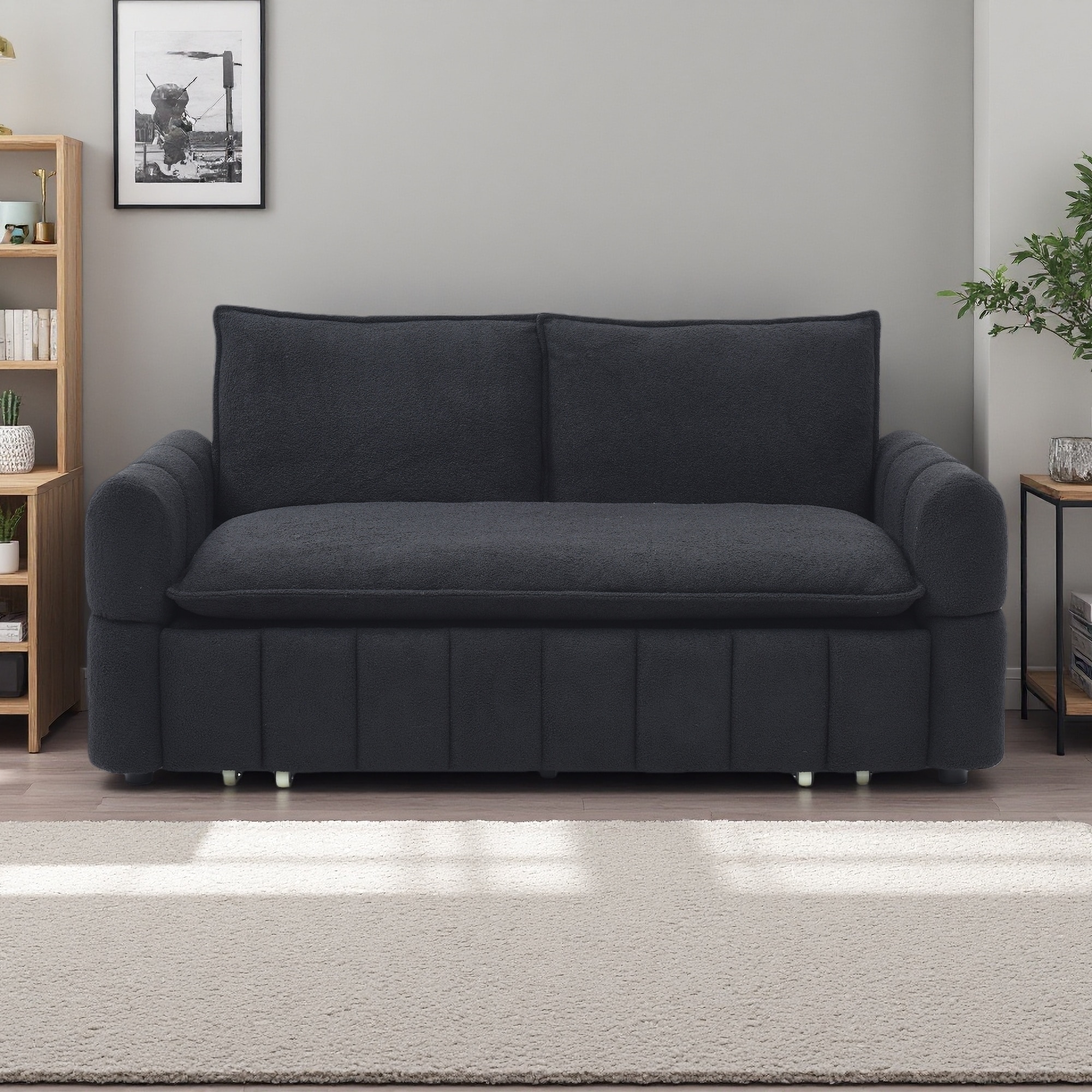 70" Teddy Fabric 3-in-1 Sleeper Sofa with Chaise Lounge and Pull-Out Bed (2-Seat)