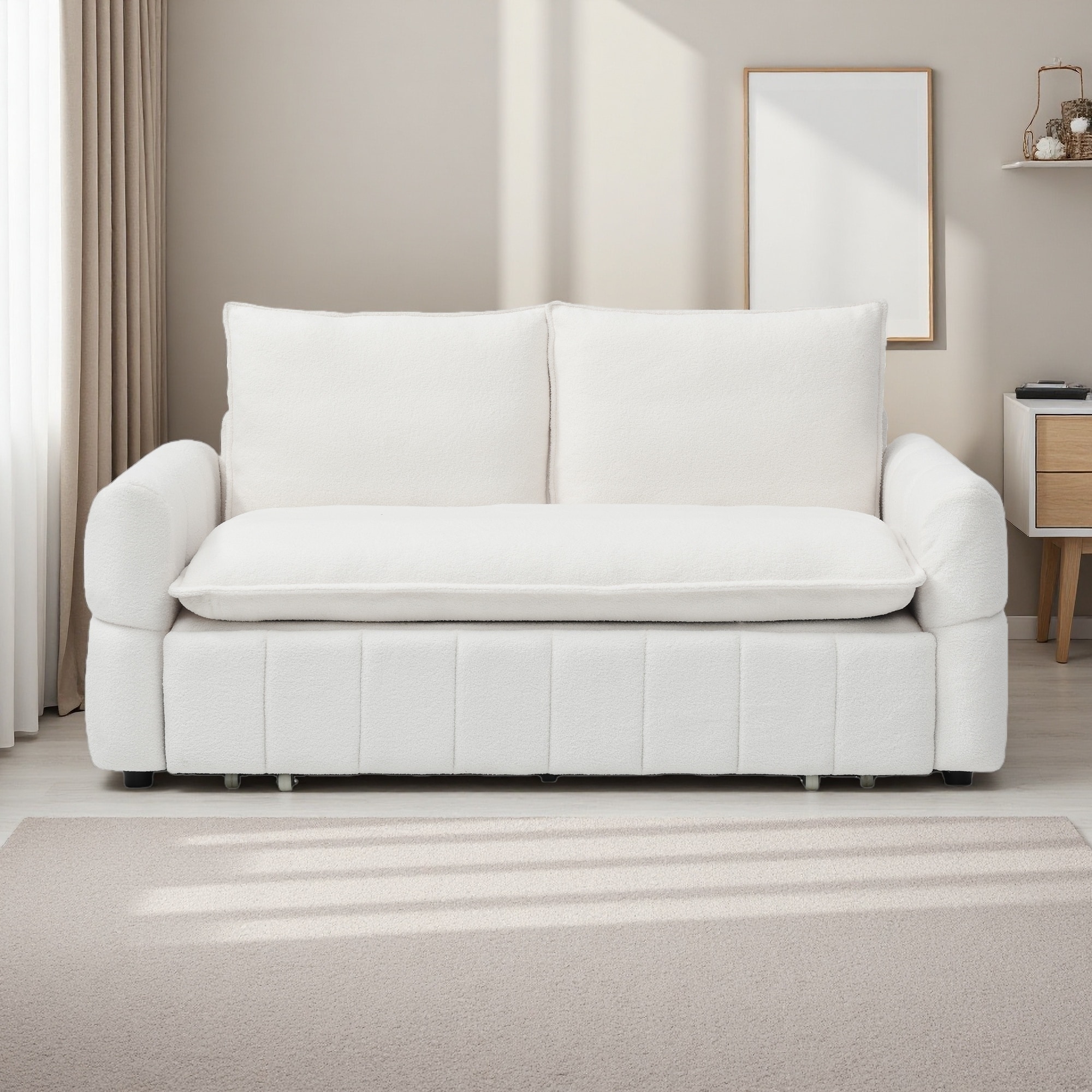 70" Teddy Fabric 3-in-1 Sleeper Sofa with Chaise Lounge and Pull-Out Bed (2-Seat)