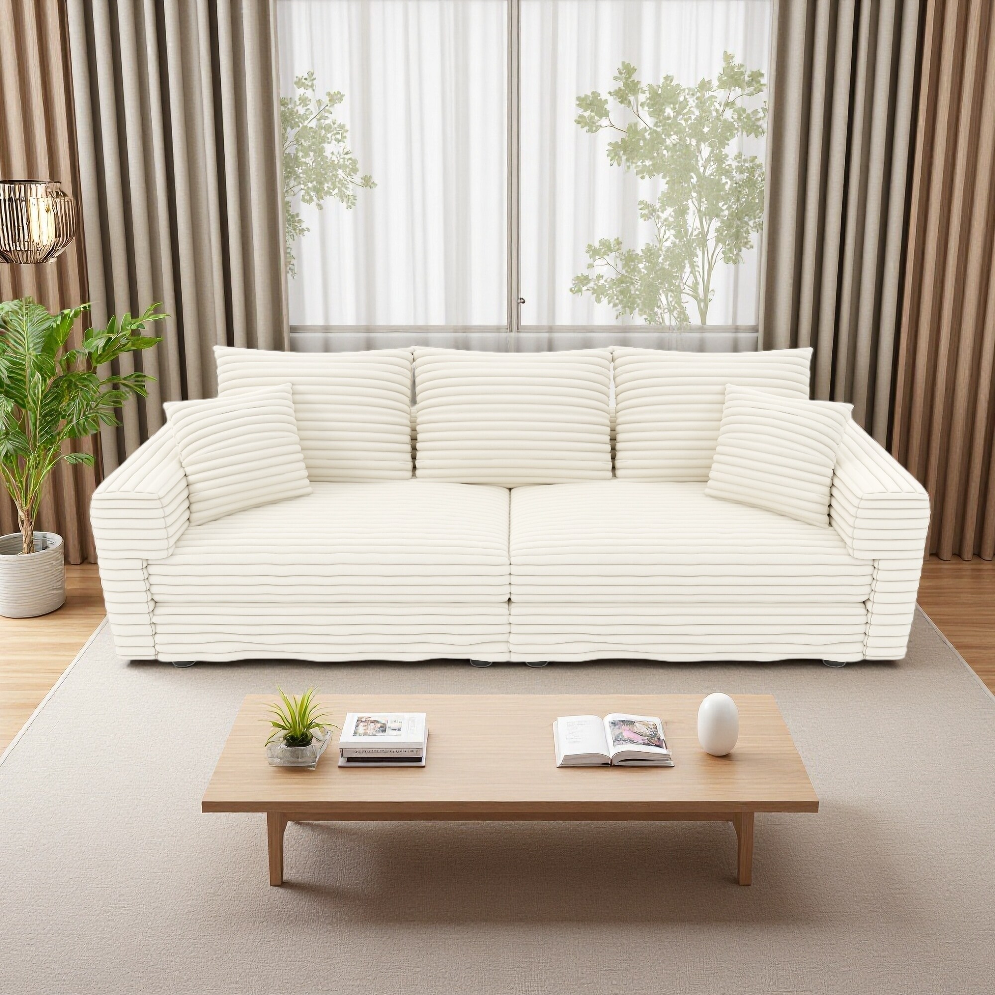82.7" Plush Corduroy 3-Seat Sofa Upholstered Couch with Deep Seat & Soft Pillow, Convertible Lounge Chair with Matching Ottomans