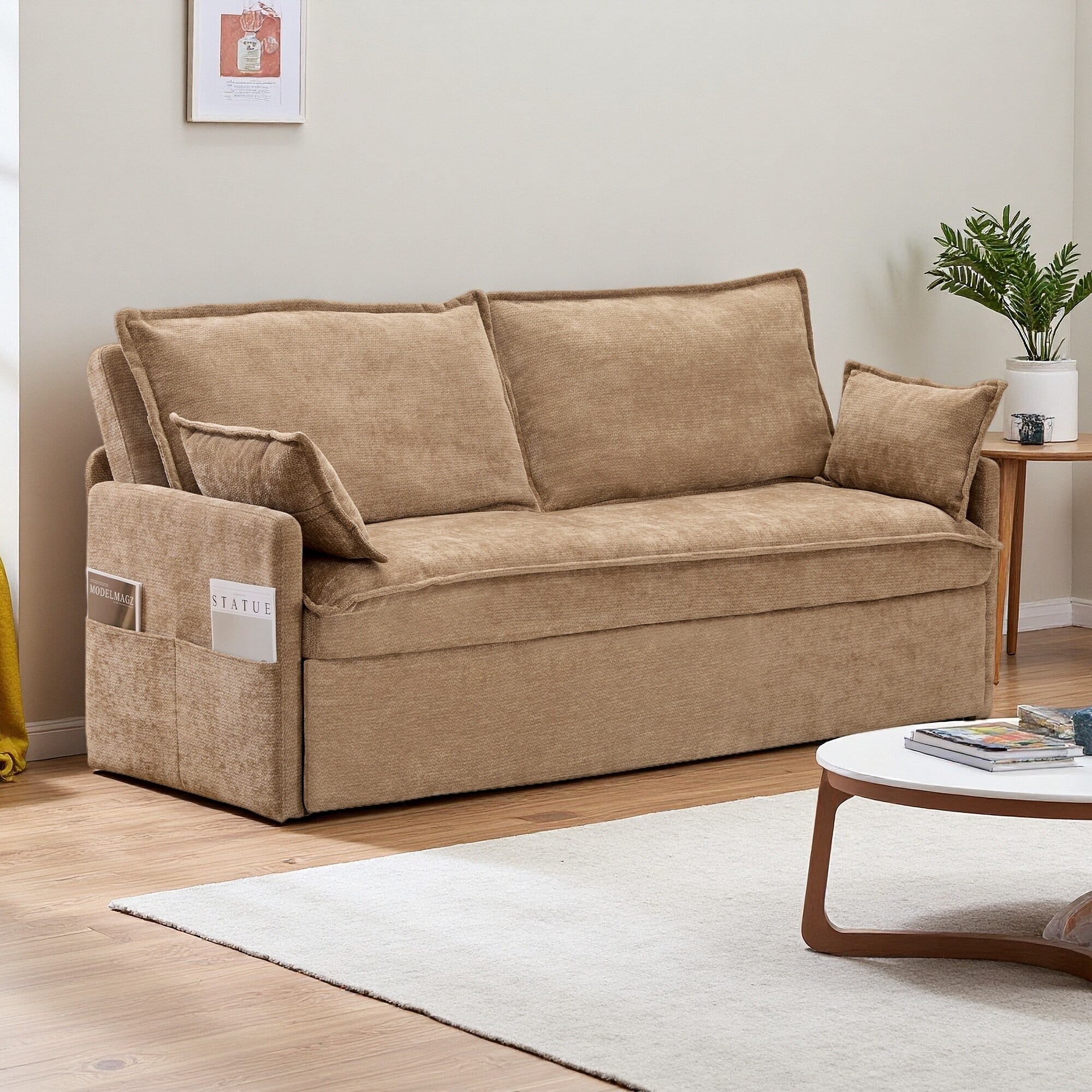 59.5" Chenille 2-in-1 Pull Out Sofa Bed with Side Storage and USB/C-Type Charging Ports, Sleeper Sofa Couch for Living Room