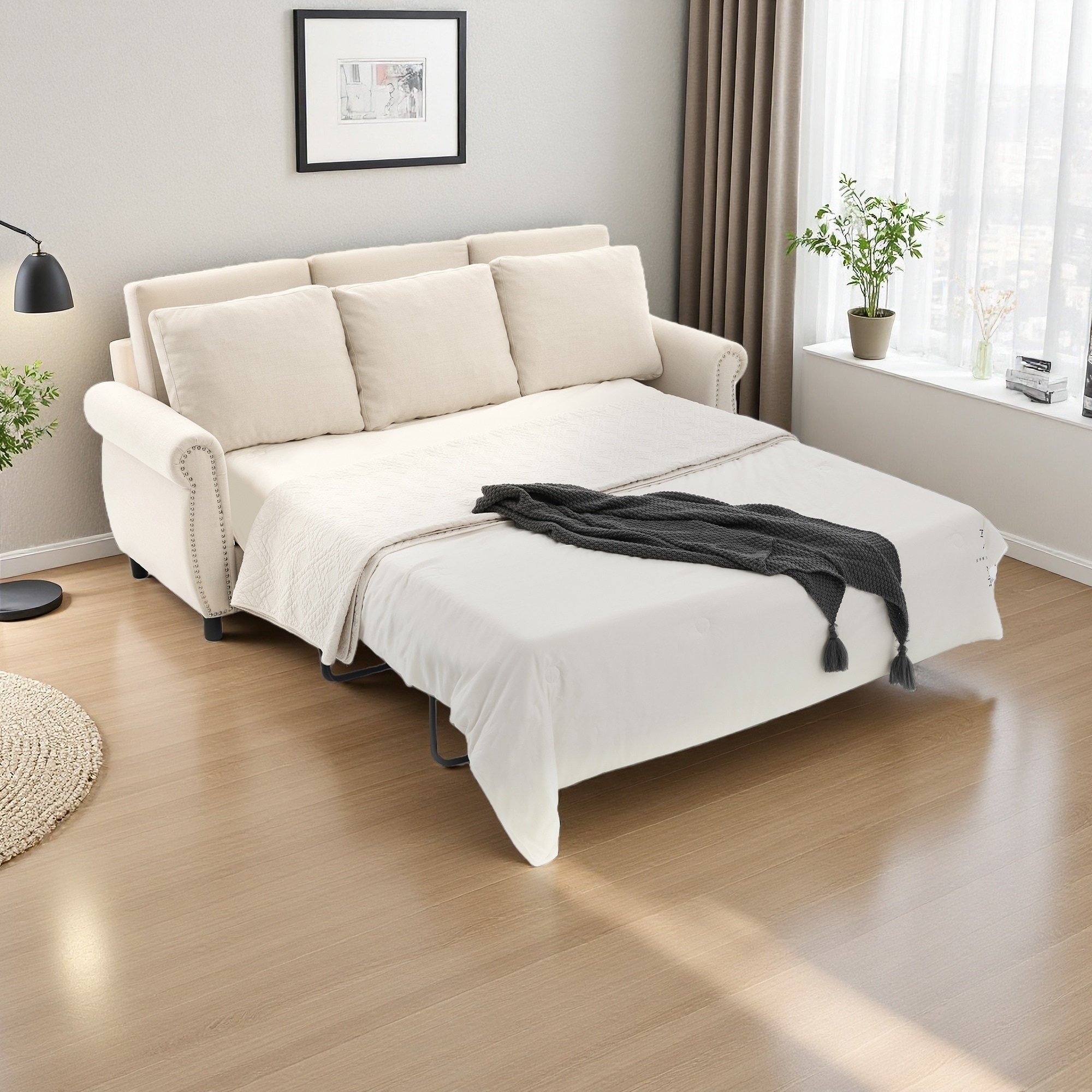 81.5" Linen Fabric Sleeper Sofa Bed with Pull-Out Mattress and 3-Seater Design