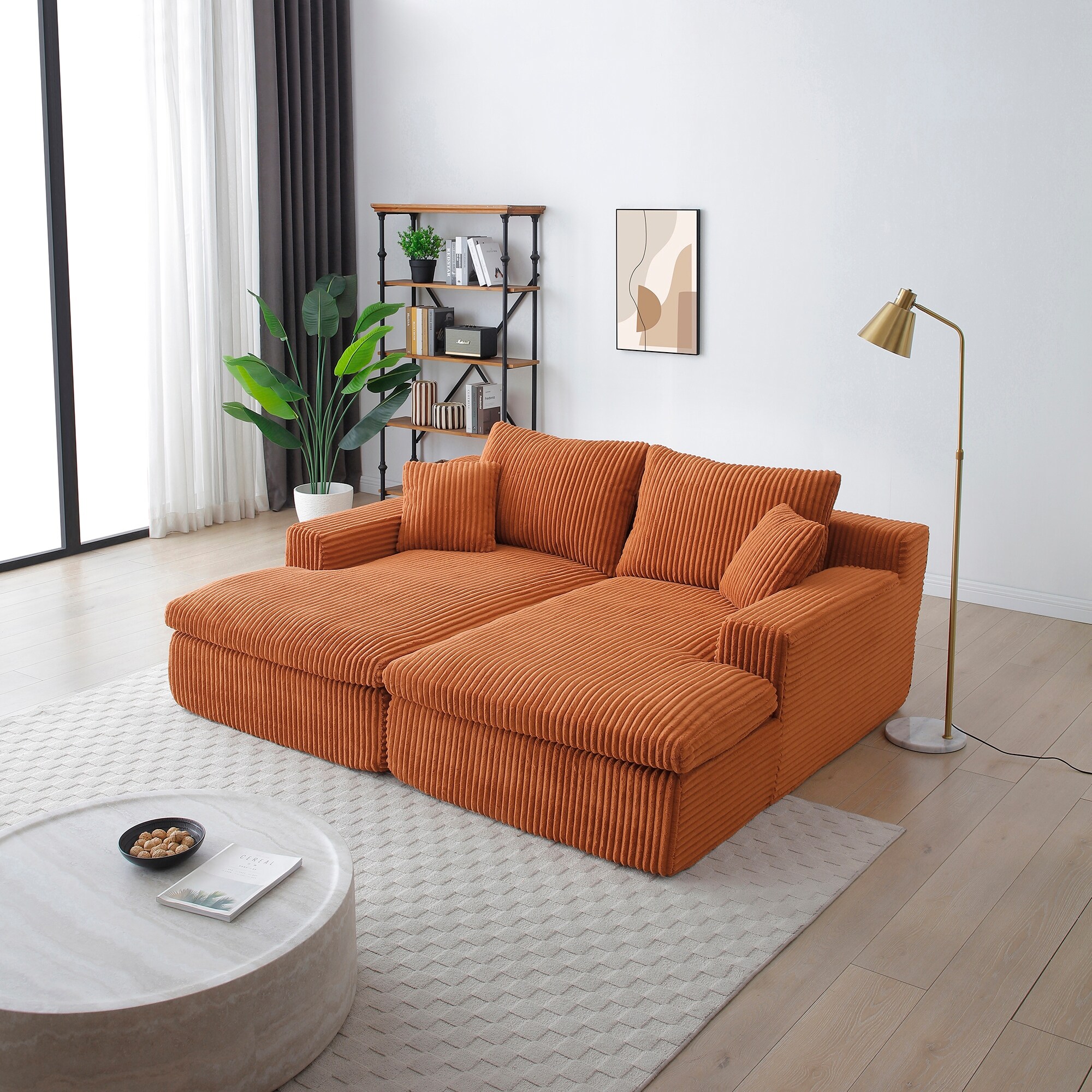 Symmetrical Corduroy Double Chaise Couch U-shaped Sectional Sofa