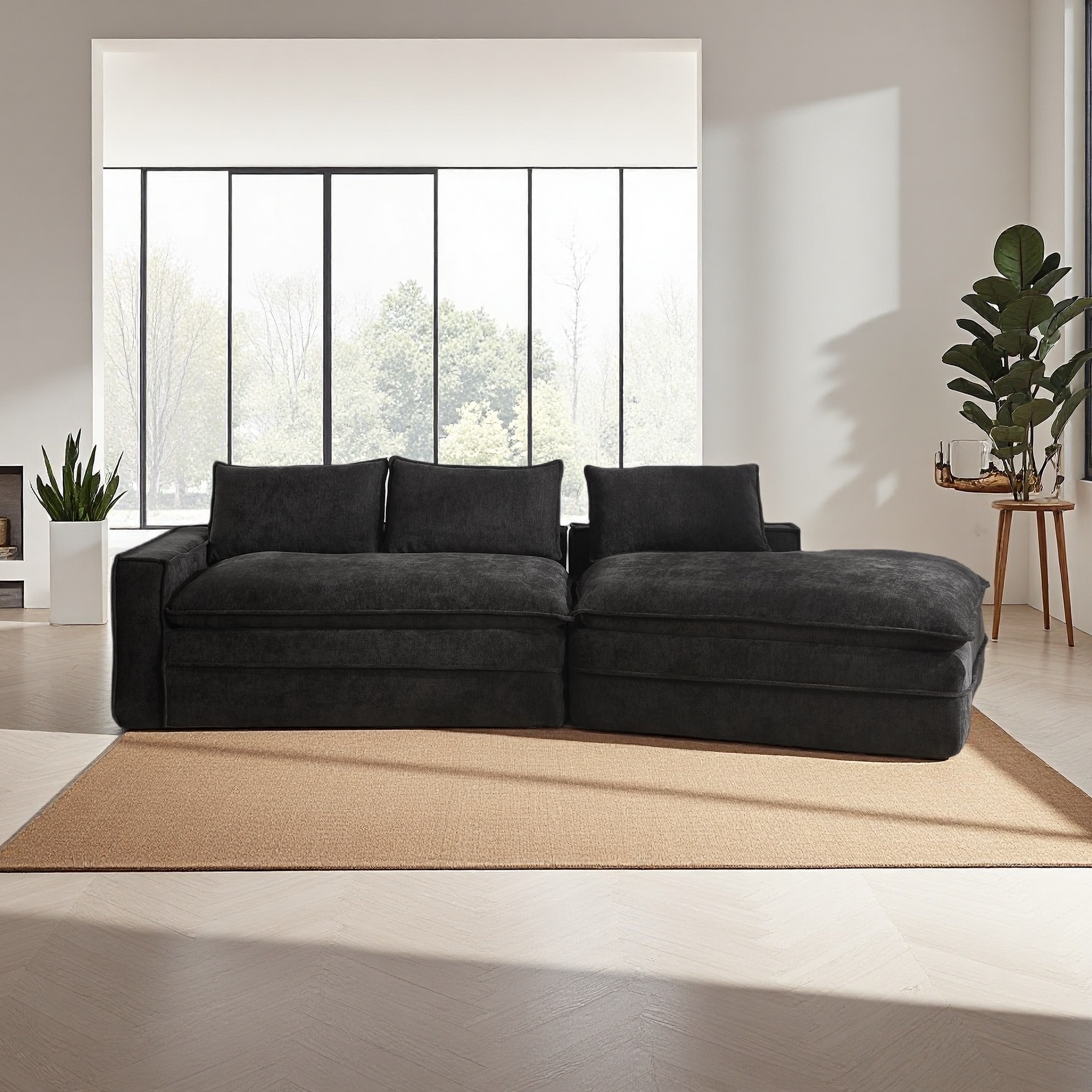 Four-Seater Modular Sectional Couch,Premium Chenille Fabric,With 2 Throw Pillows,Tufted Cushion Backrest Design